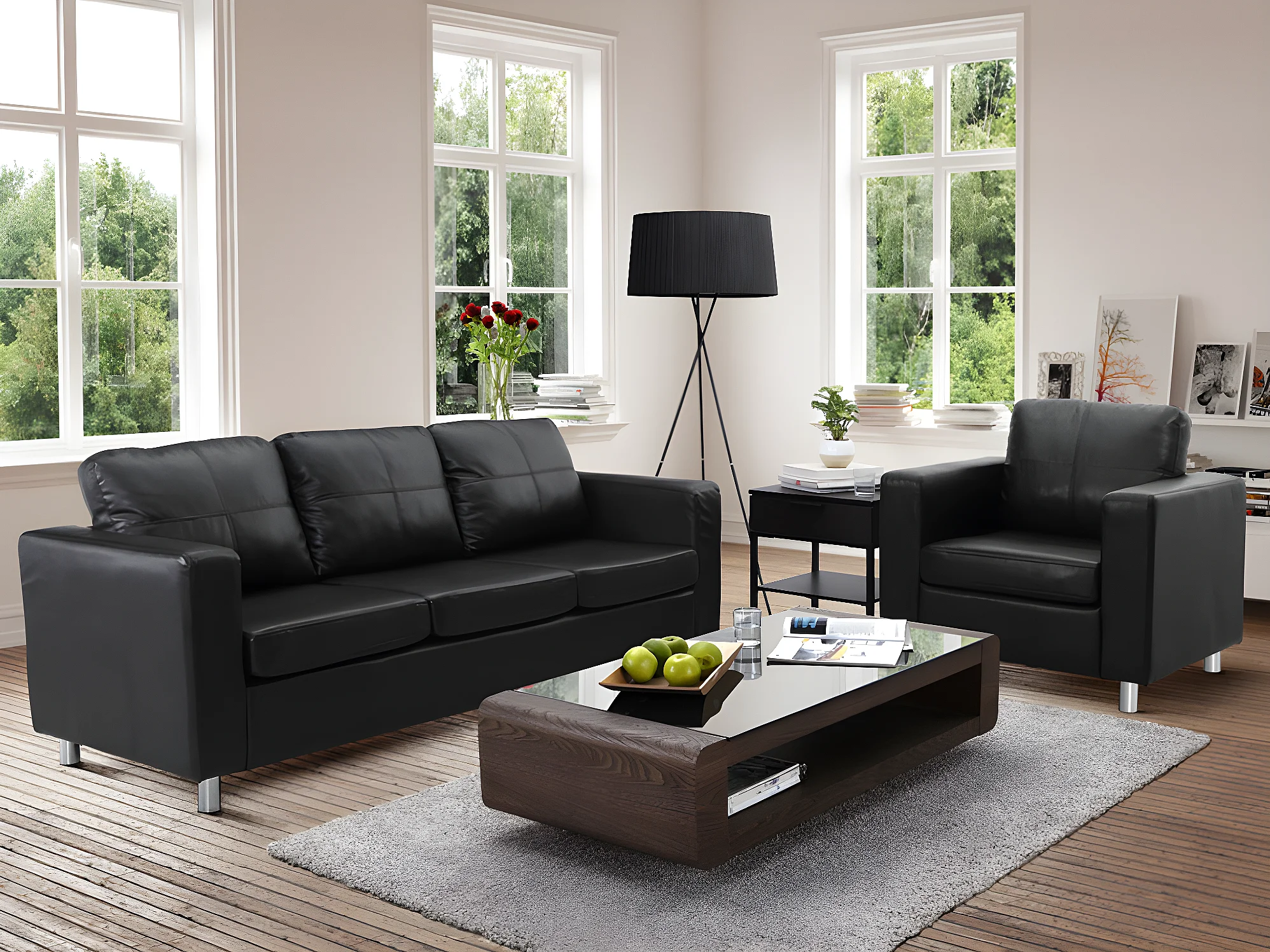 3-sits soffa och en fåtölj i konstläder ACKLEY - Svart