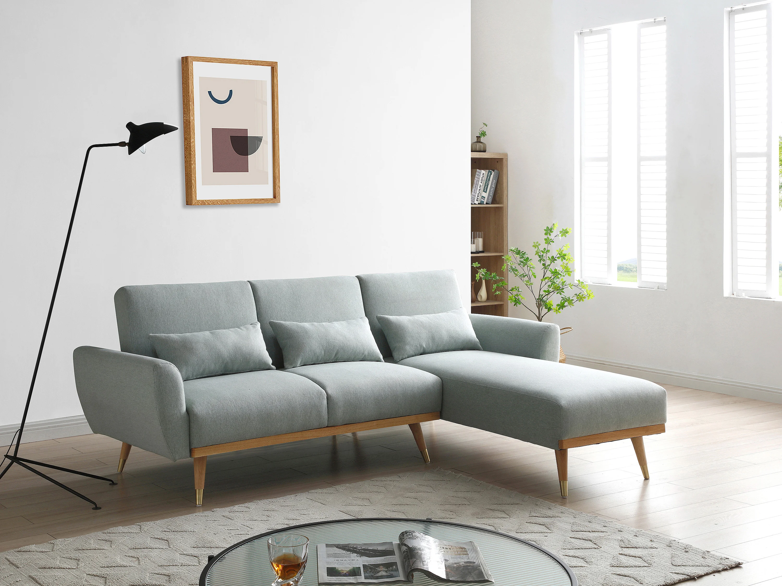 Vändbar bäddsoffa med klick-klack-mekanism i grågrönt tyg ANDINO