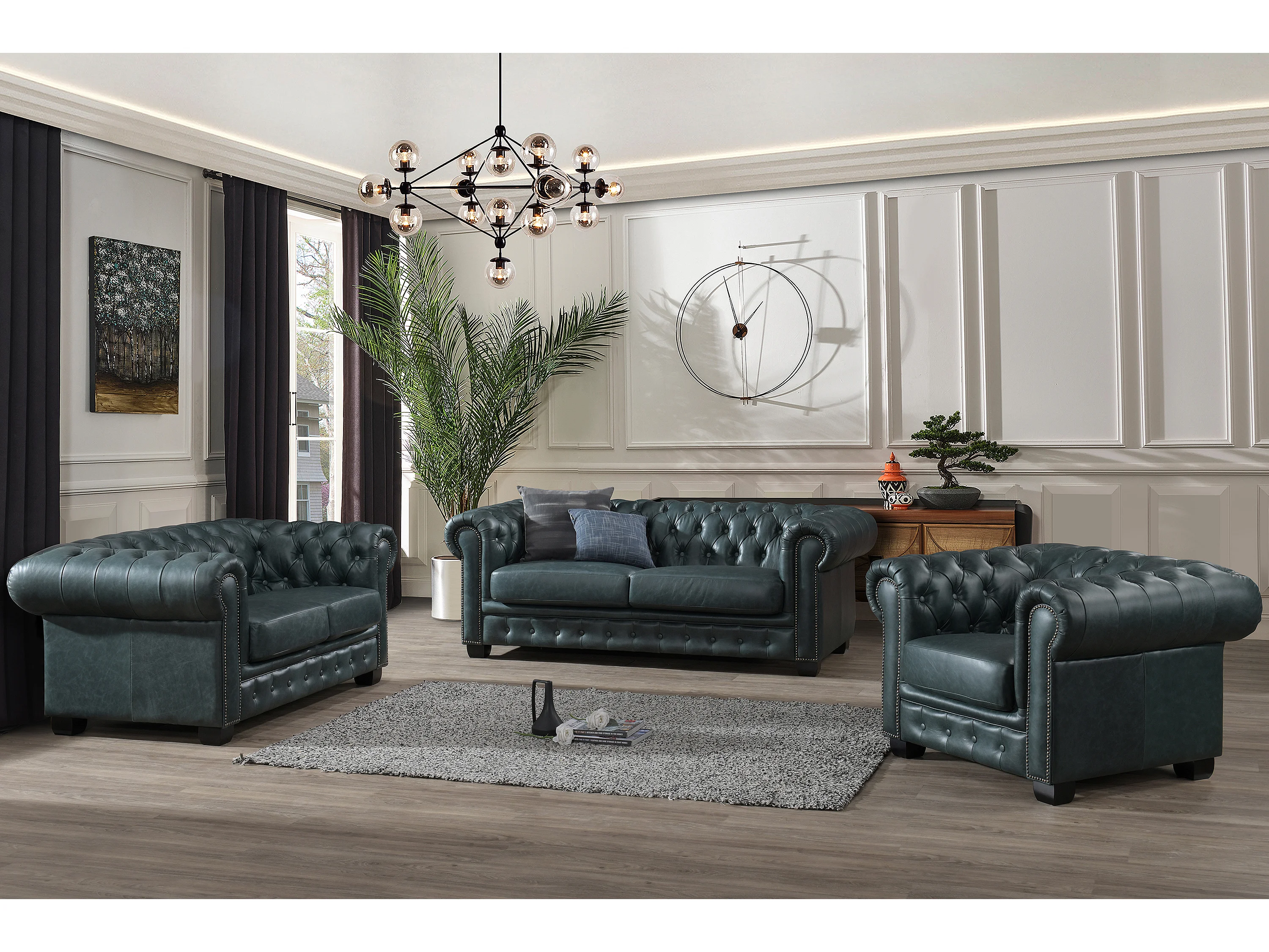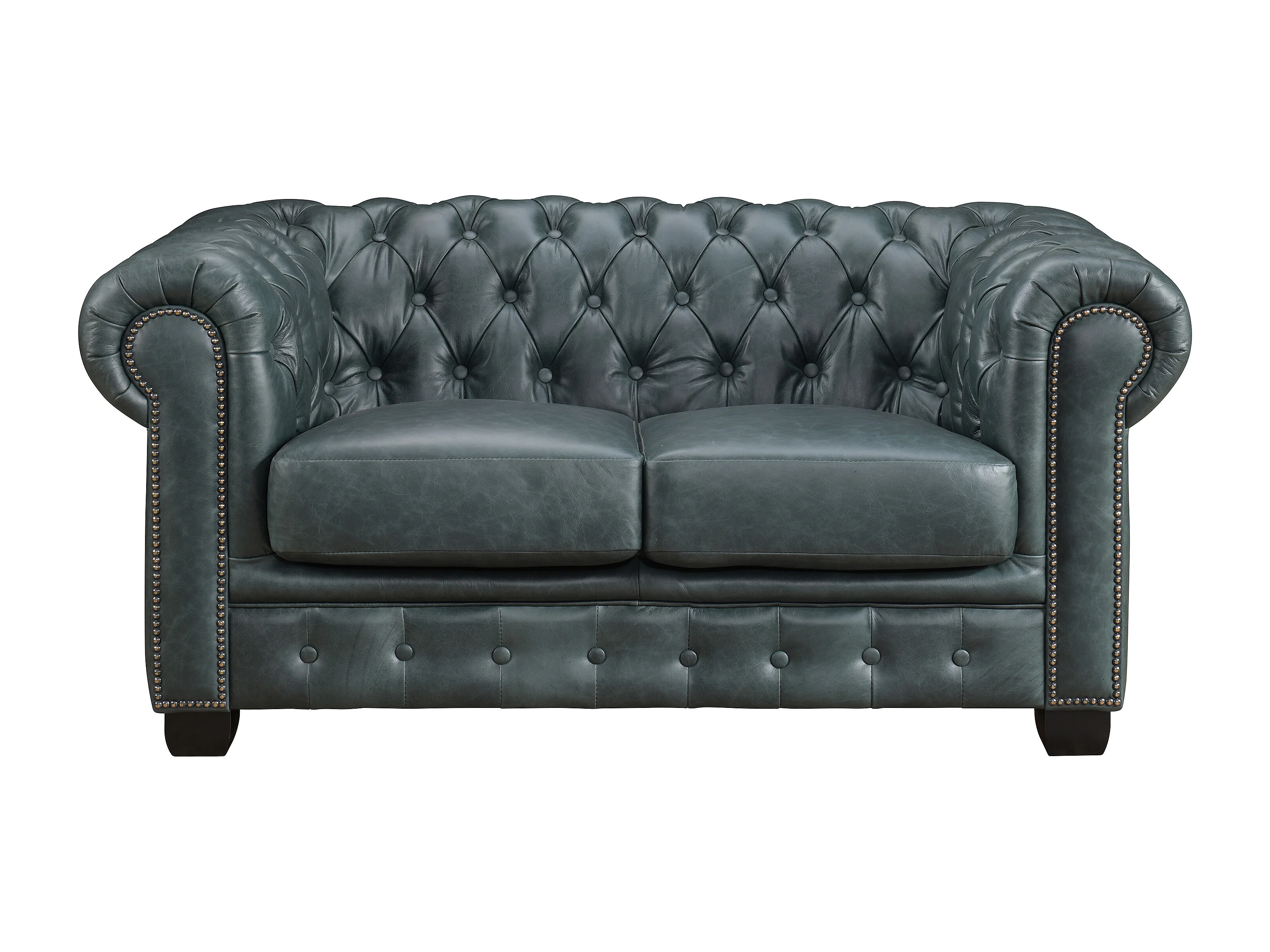 Chesterfieldsoffa 2-sits BRENTON 100% premium buffelläder - Grågrön