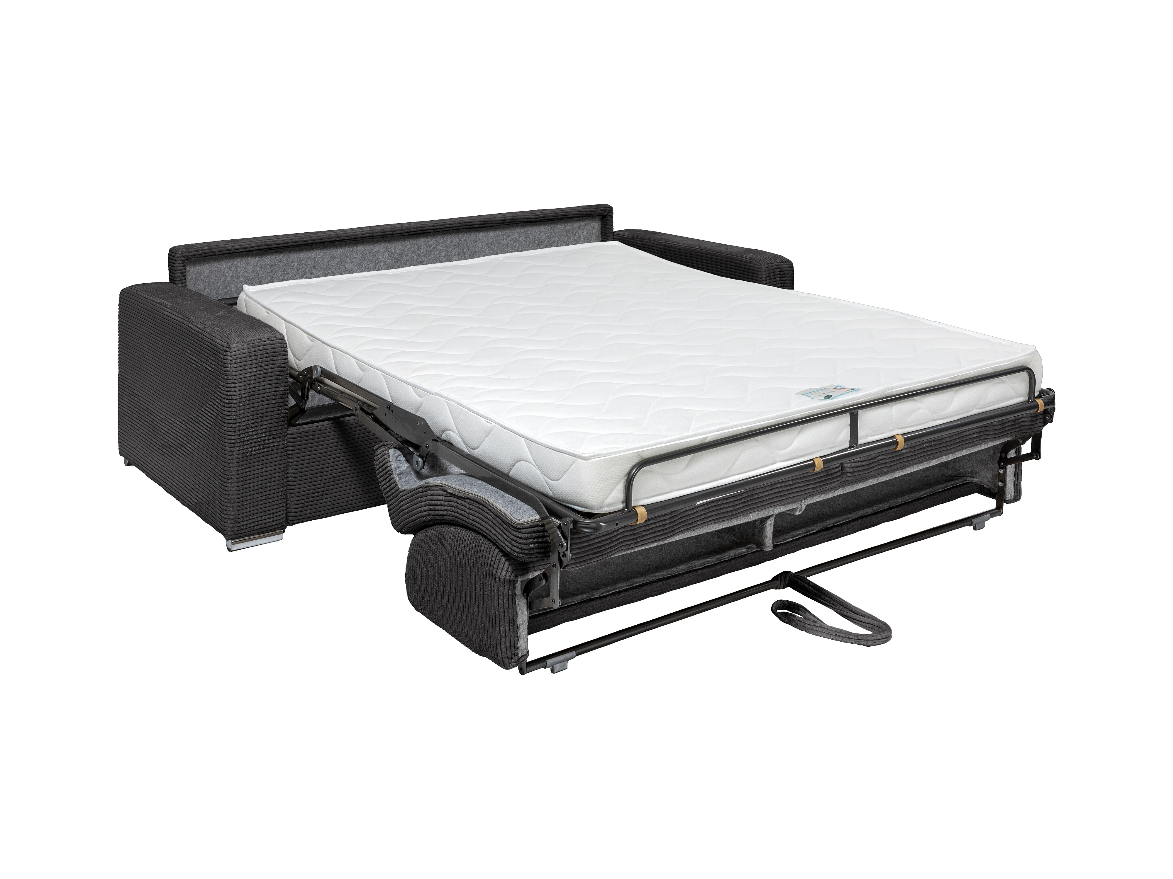 3-sits bäddsoffa med snabbutfällning i grå Manchester-sammet - Sängbotten med breda lameller 140 cm - 14 cm madrass CALITO