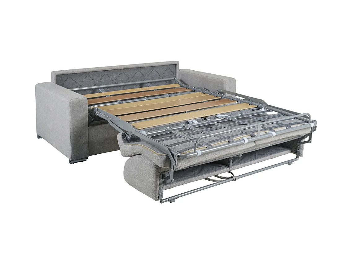 3-sitssoffa med bäddmekanism i grå konstläder - Bäddmadrass med breda lameller 140 cm - 14 cm madrass CALITO