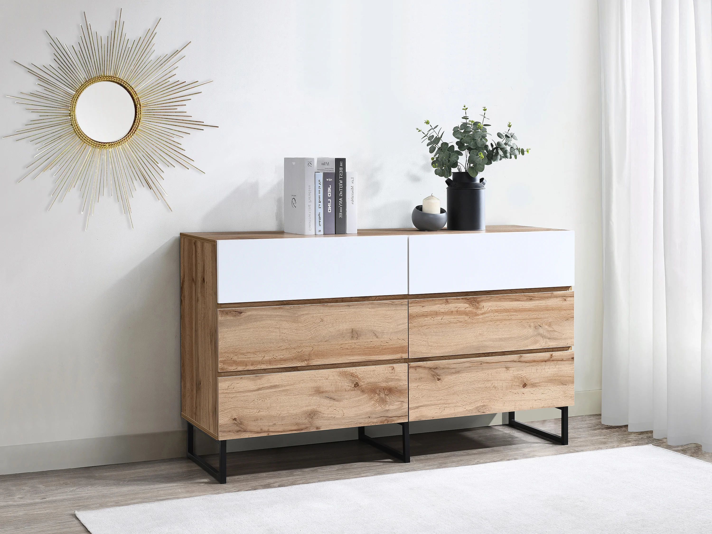 Byrå med 6 lådor - Färg: Naturlig och vit - CEVANIA
