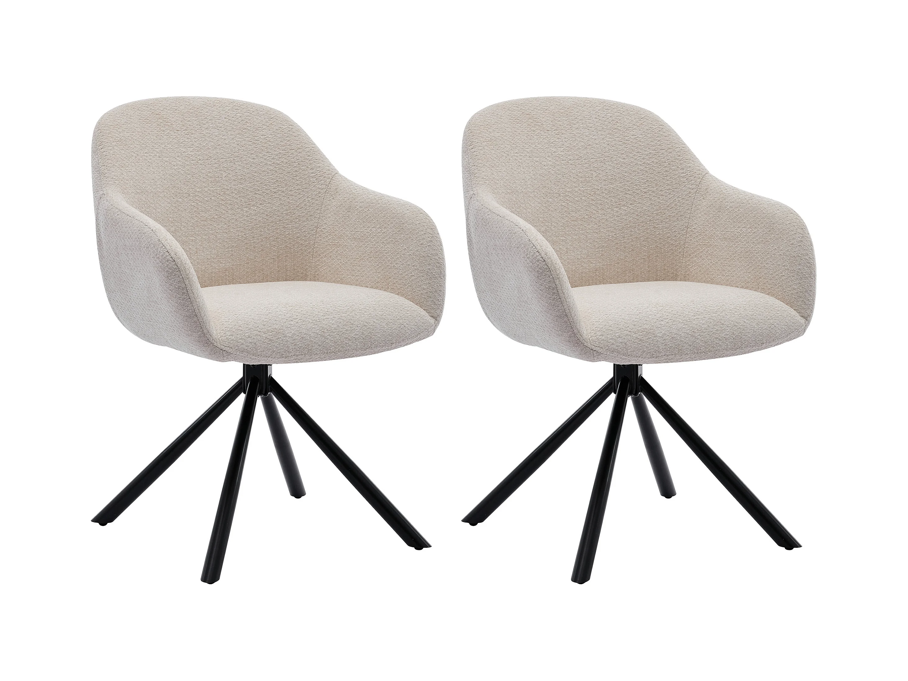 Set med 2 stolar med armstöd i texturerat tyg och svart metall - Krämvit - CILIENO