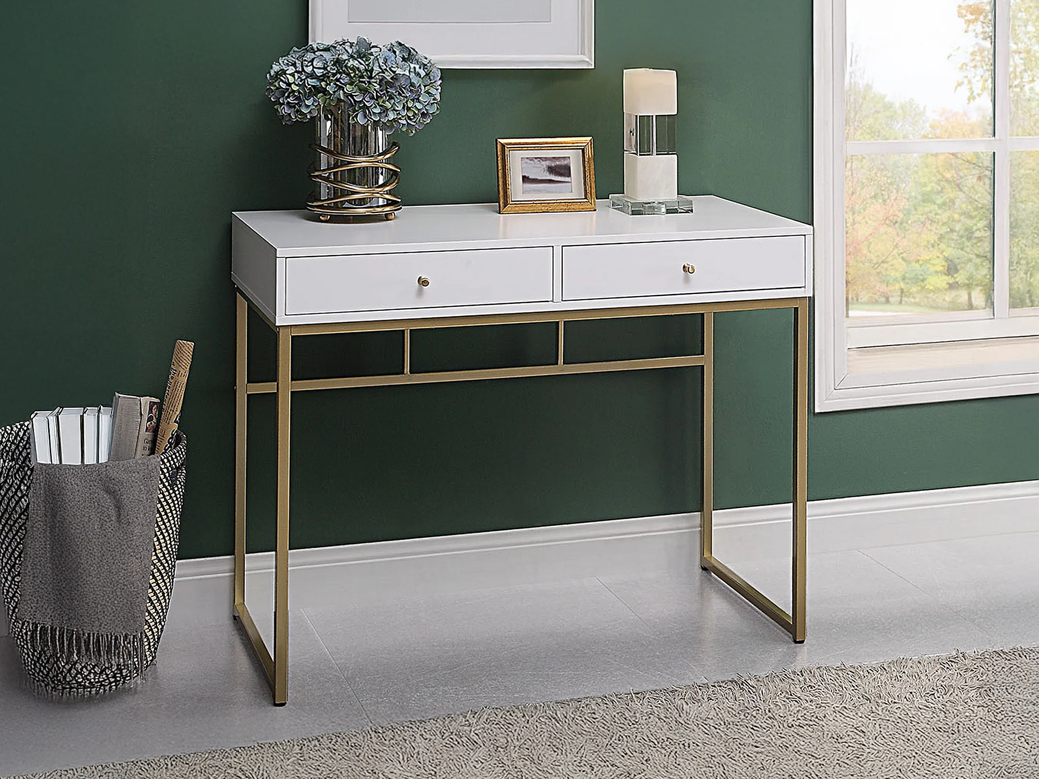 Konsol med 2 lådor i MDF - Vit och guld - CODENIA