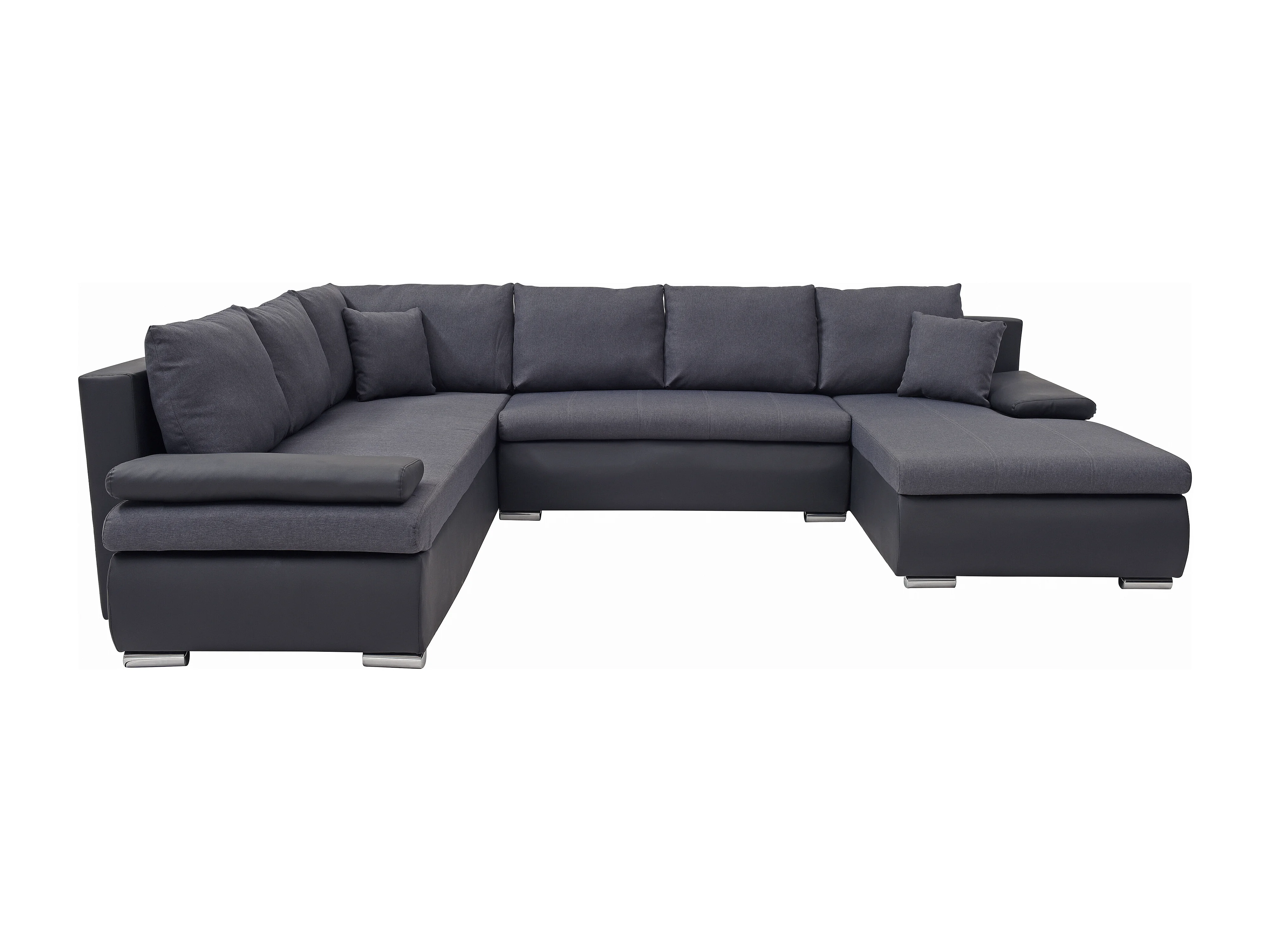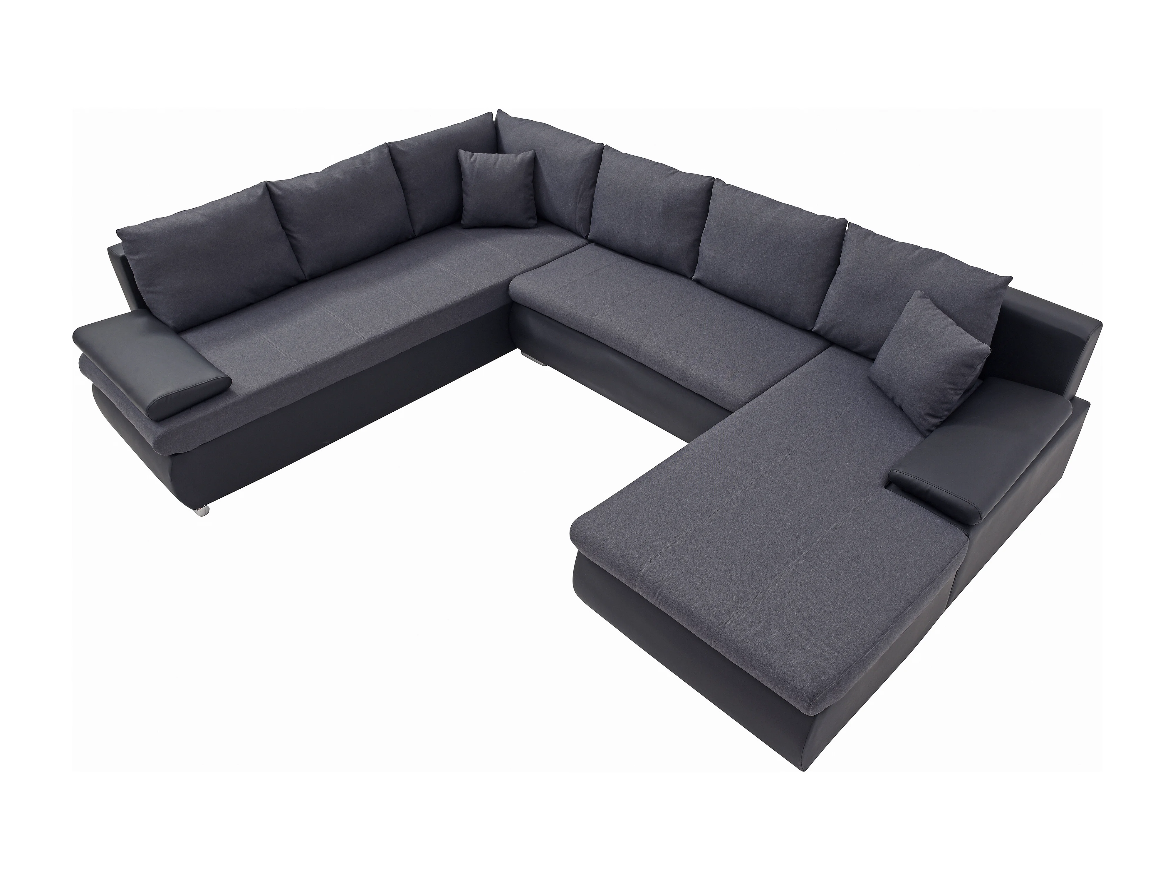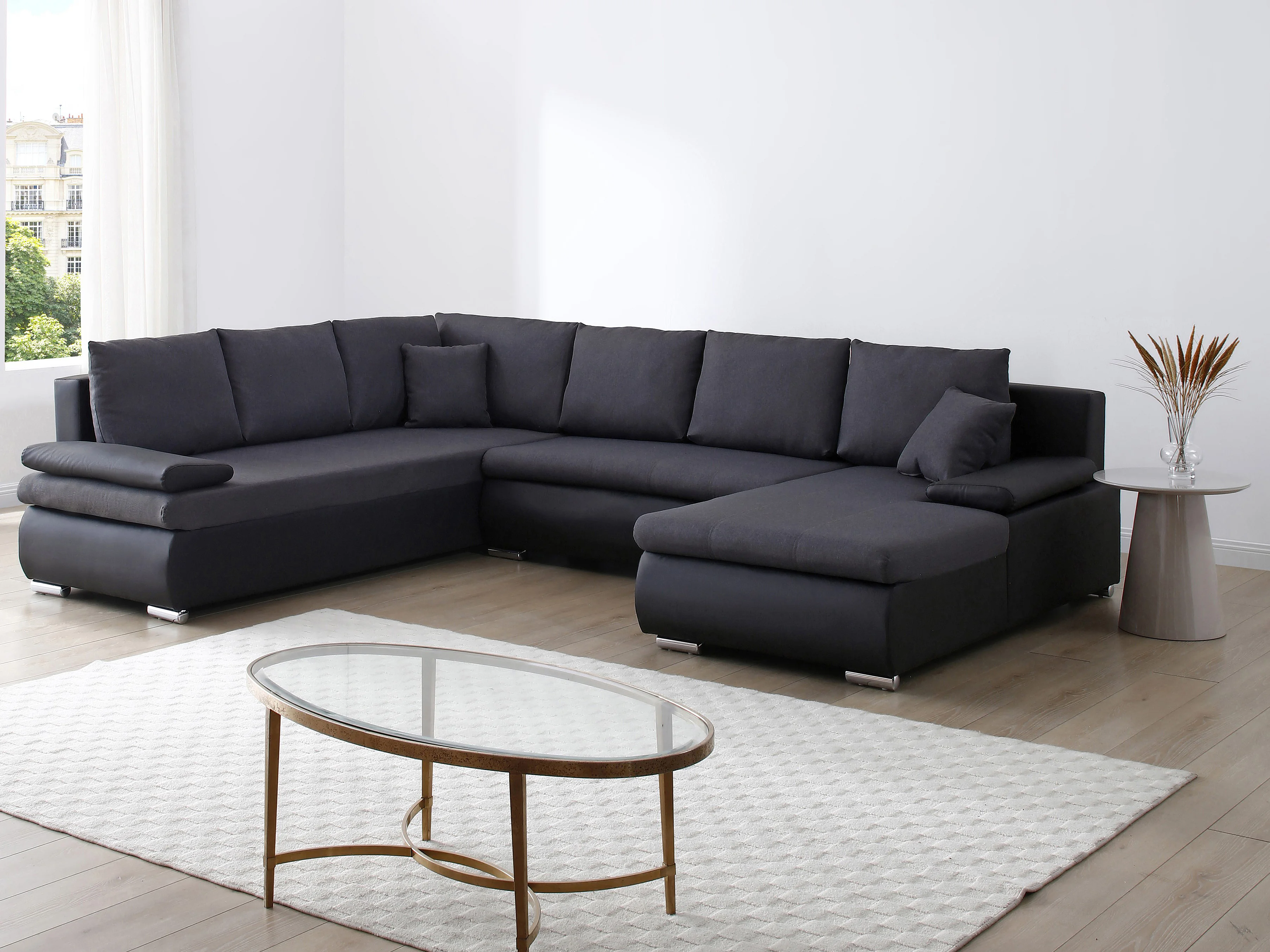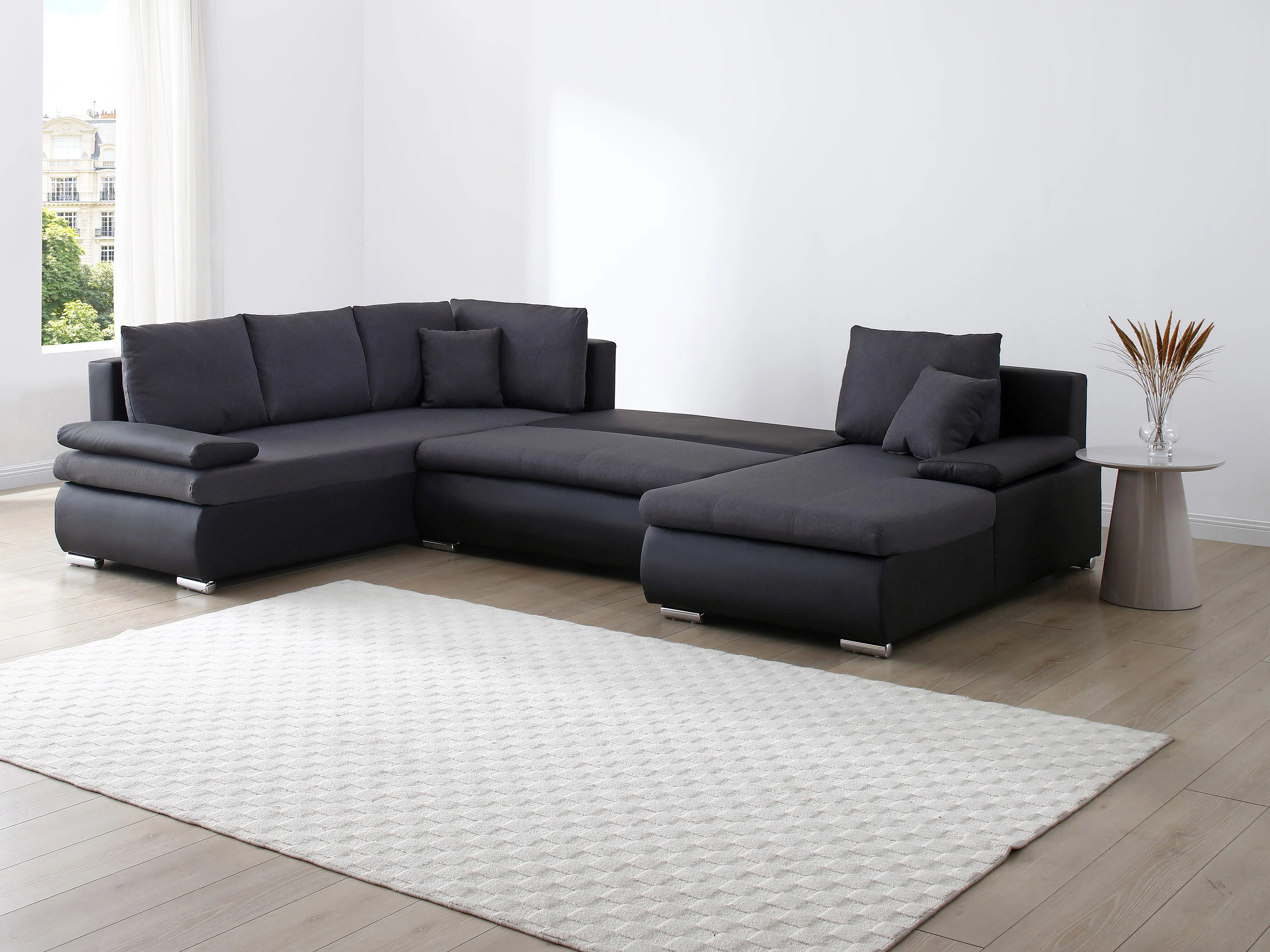 Höger panorama-bäddsoffa i svart konstläder och antracitgrått tyg DAKOTA II