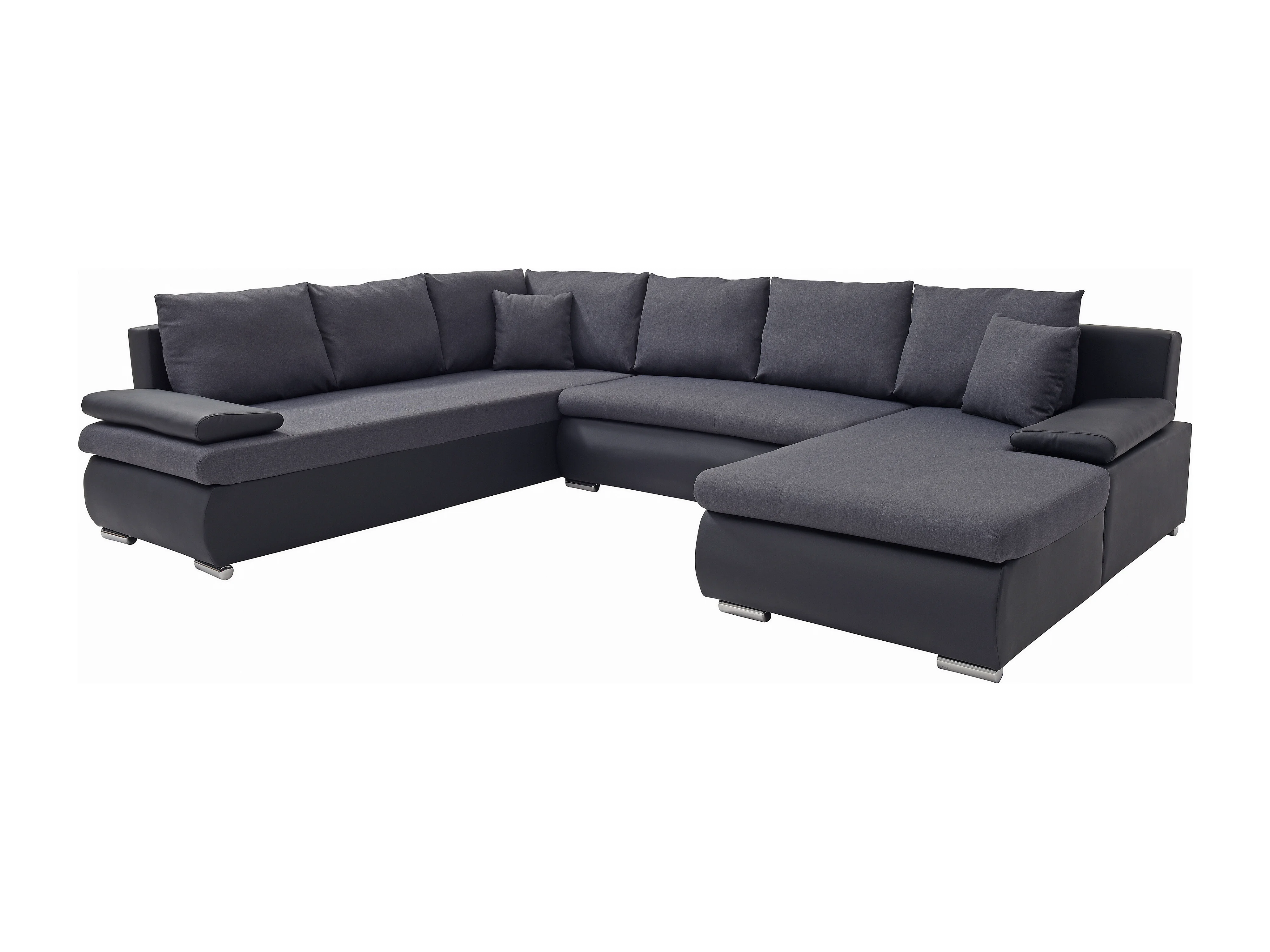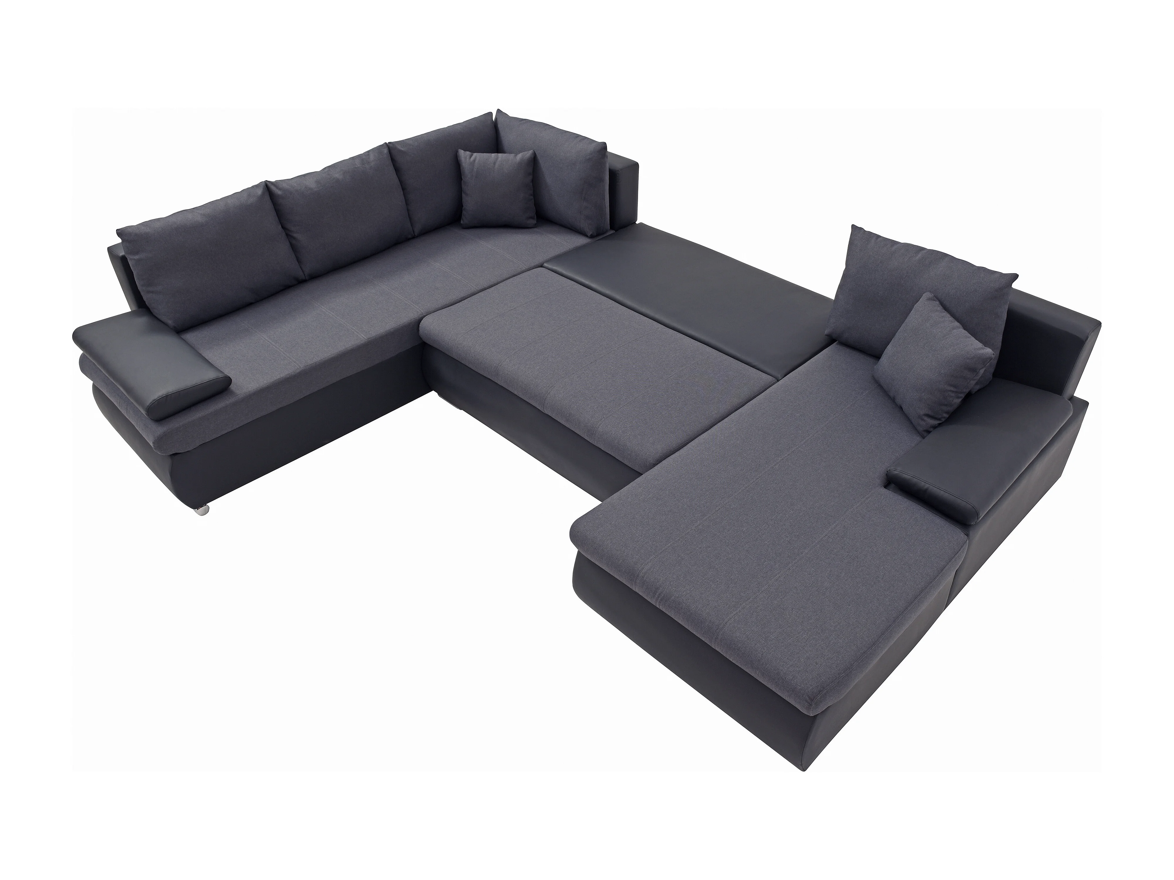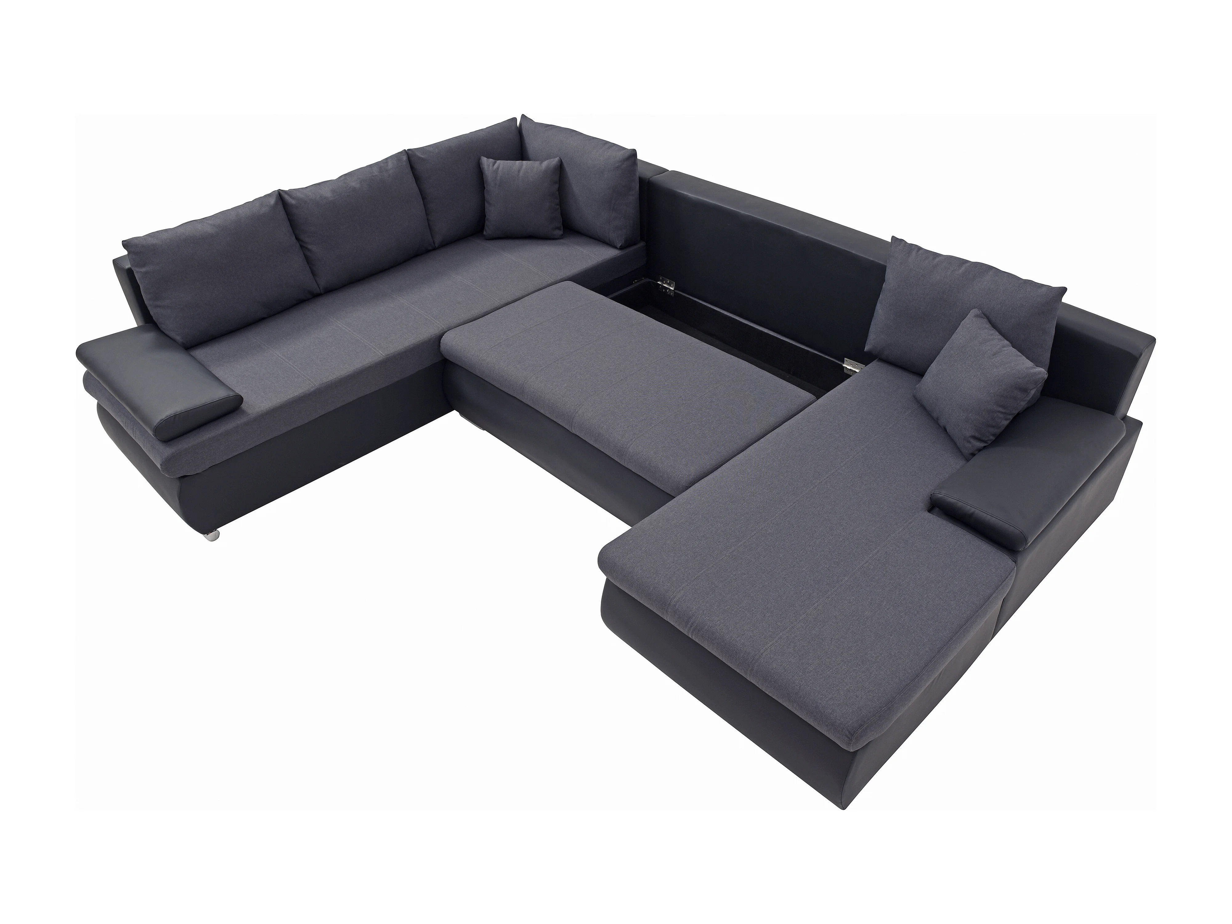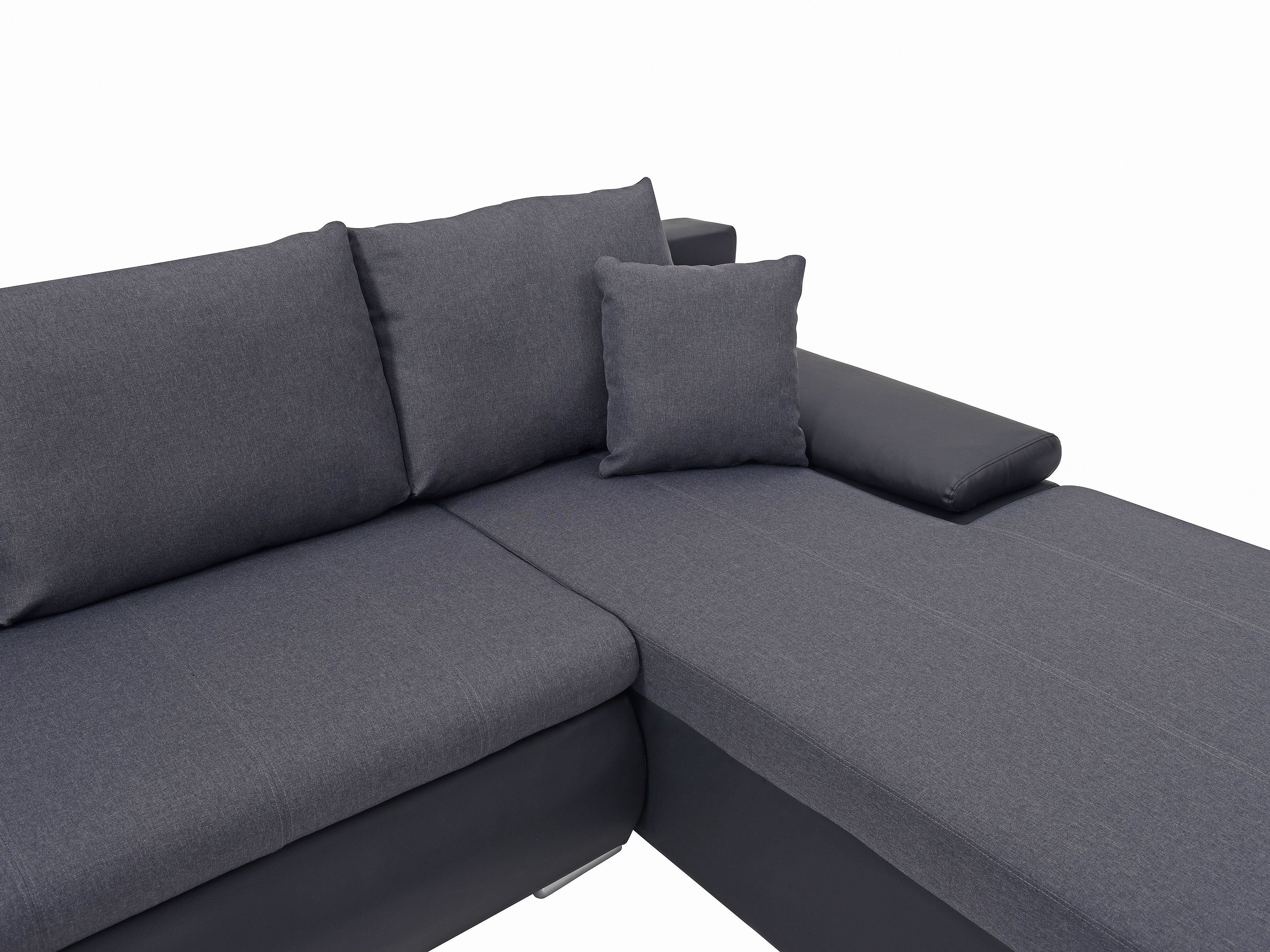 Höger panorama-bäddsoffa i svart konstläder och antracitgrått tyg DAKOTA II