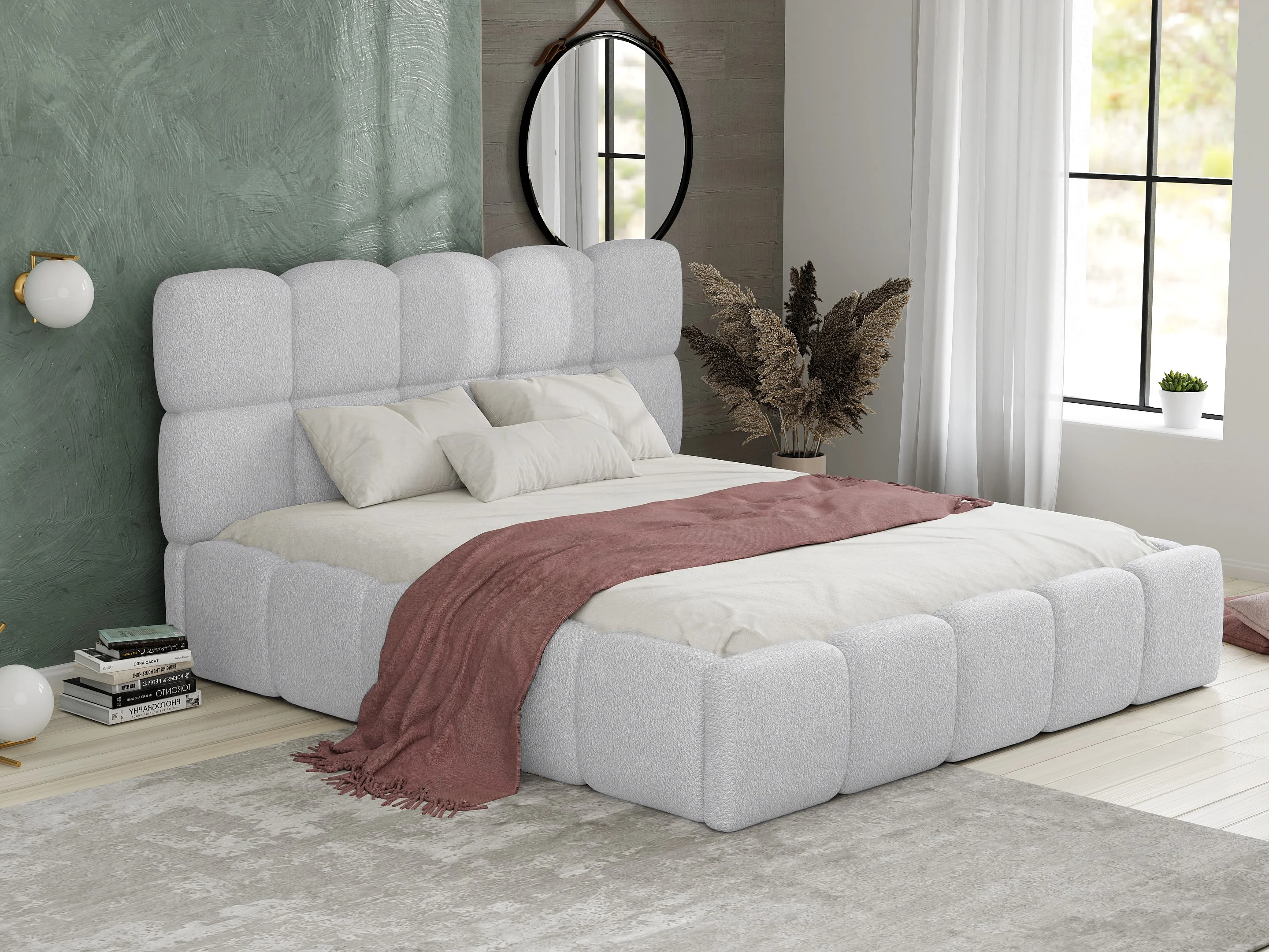 Sängbotten med förvaring 200 x 200 cm - Bouclé tyg - Ljusgrå - DAMADO II av Pascal Morabito