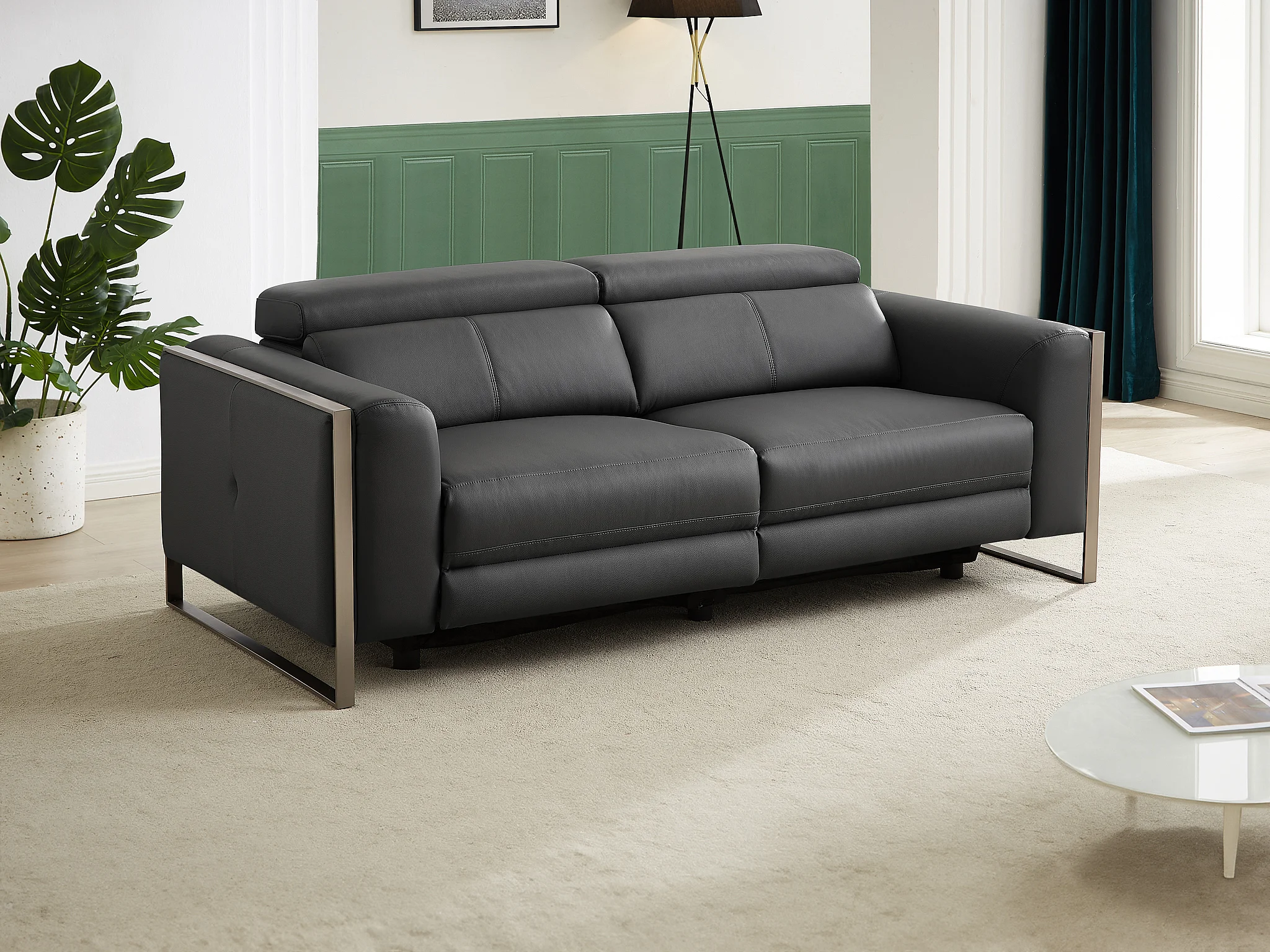 3-sits elektrisk relaxsoffa i antracitgrått läder DAVOLI