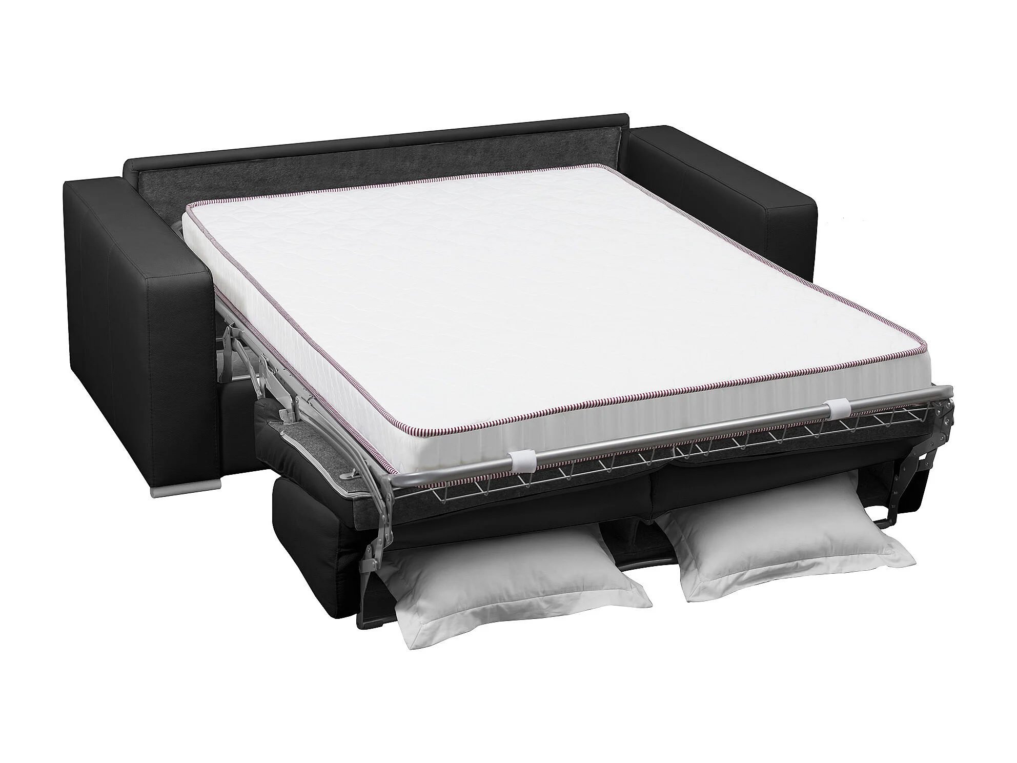 3-sits bäddsoffa express 100% svart buffellädersoffa med 16 cm madrass DELECTEA II