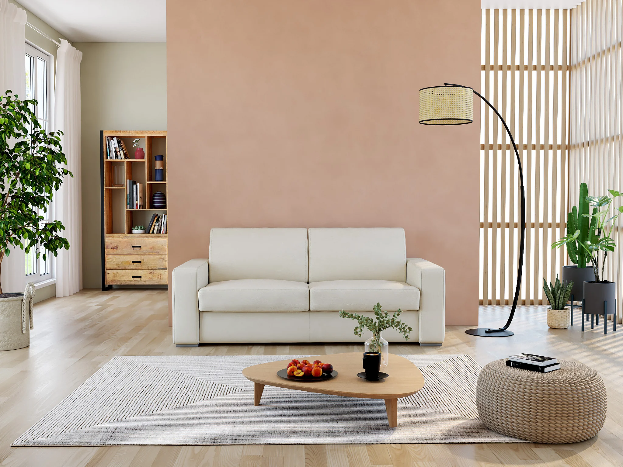 3-sitssoffa med bäddfunktion express 100% vitt buffellädersäng madrass 16 cm. DELECTEA II
