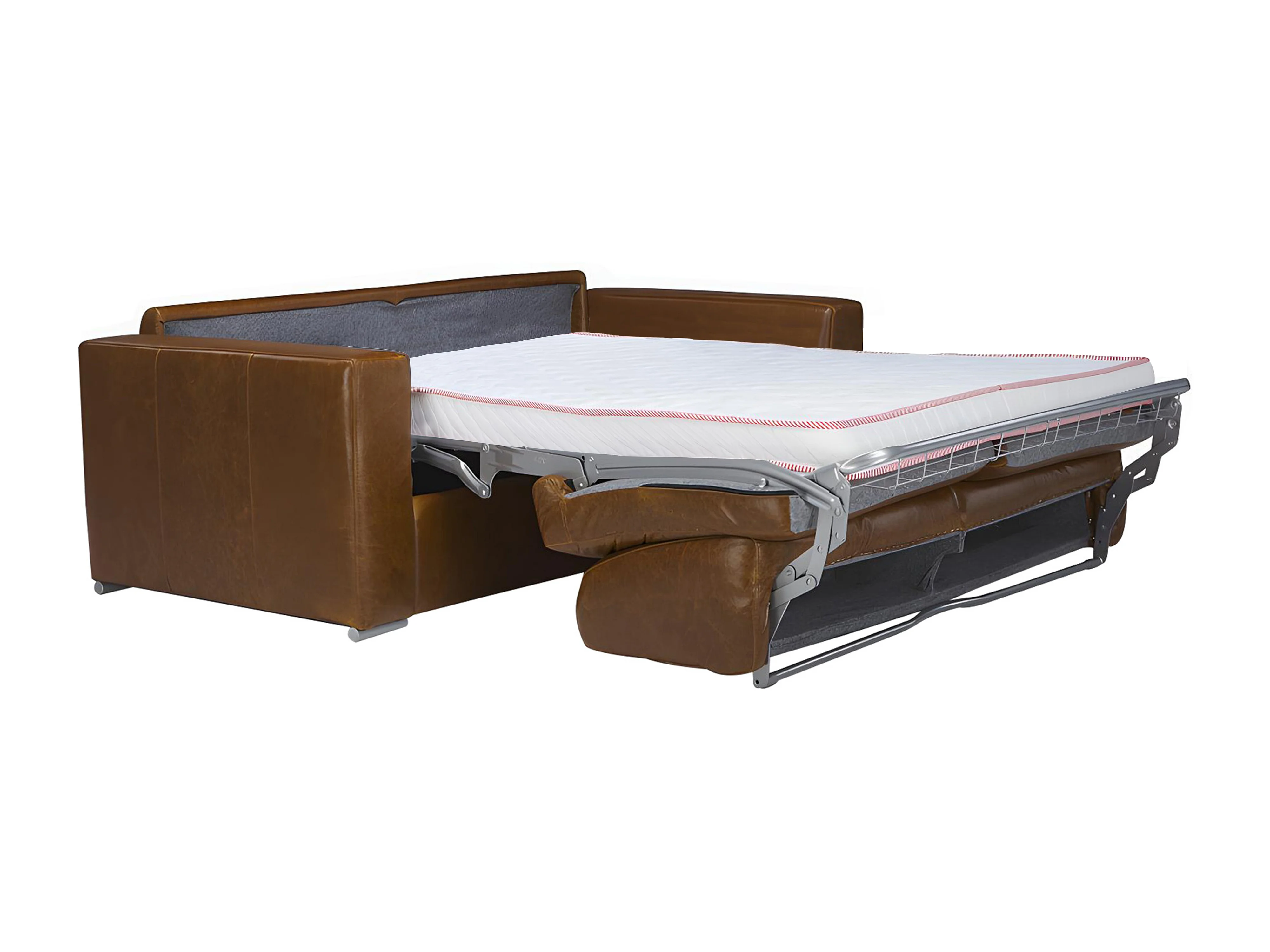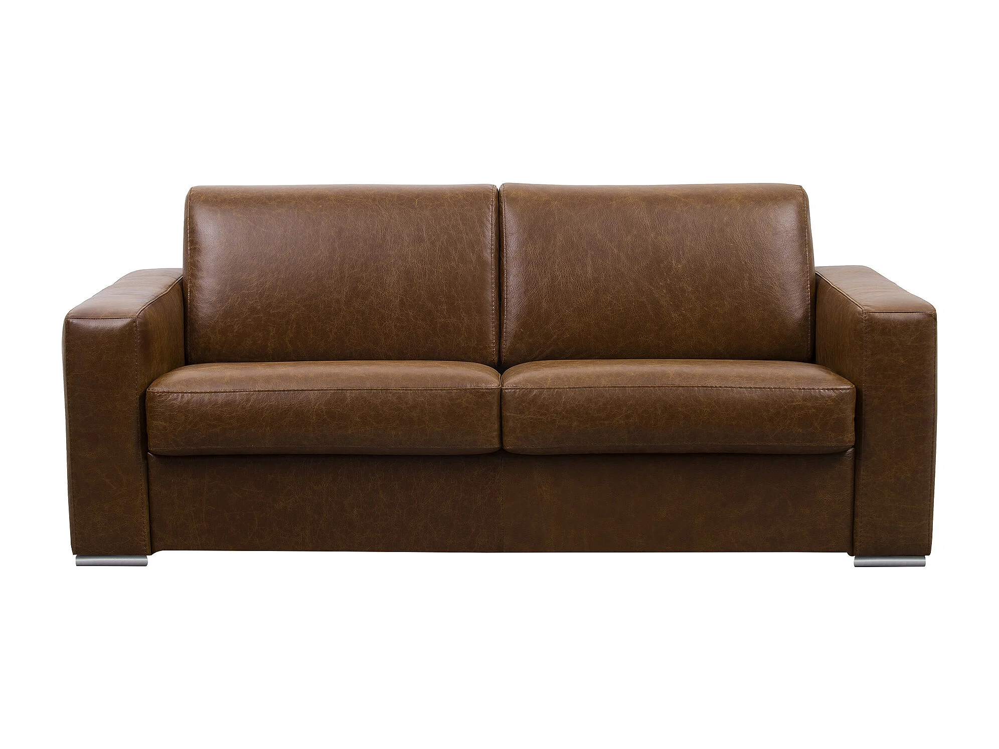 Bäddsoffa 4-sits med bäddmadrass i 100% äkta buffelläder i vintagekaramell 20 cm madrass - DELECTEA II