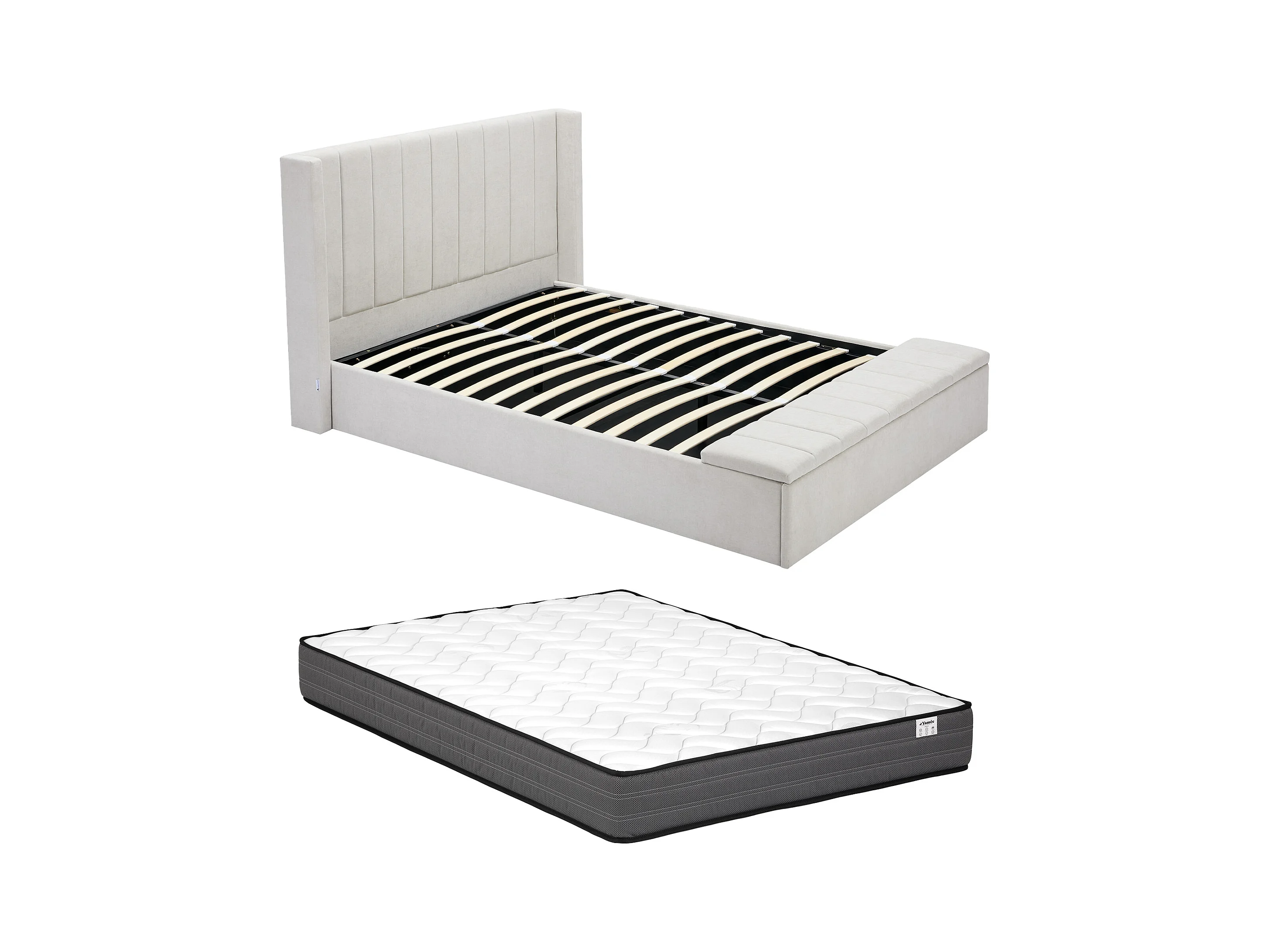 Sängkista 140 x 190 cm med bänk - Tyg - Beige + Madrass - DOUINO