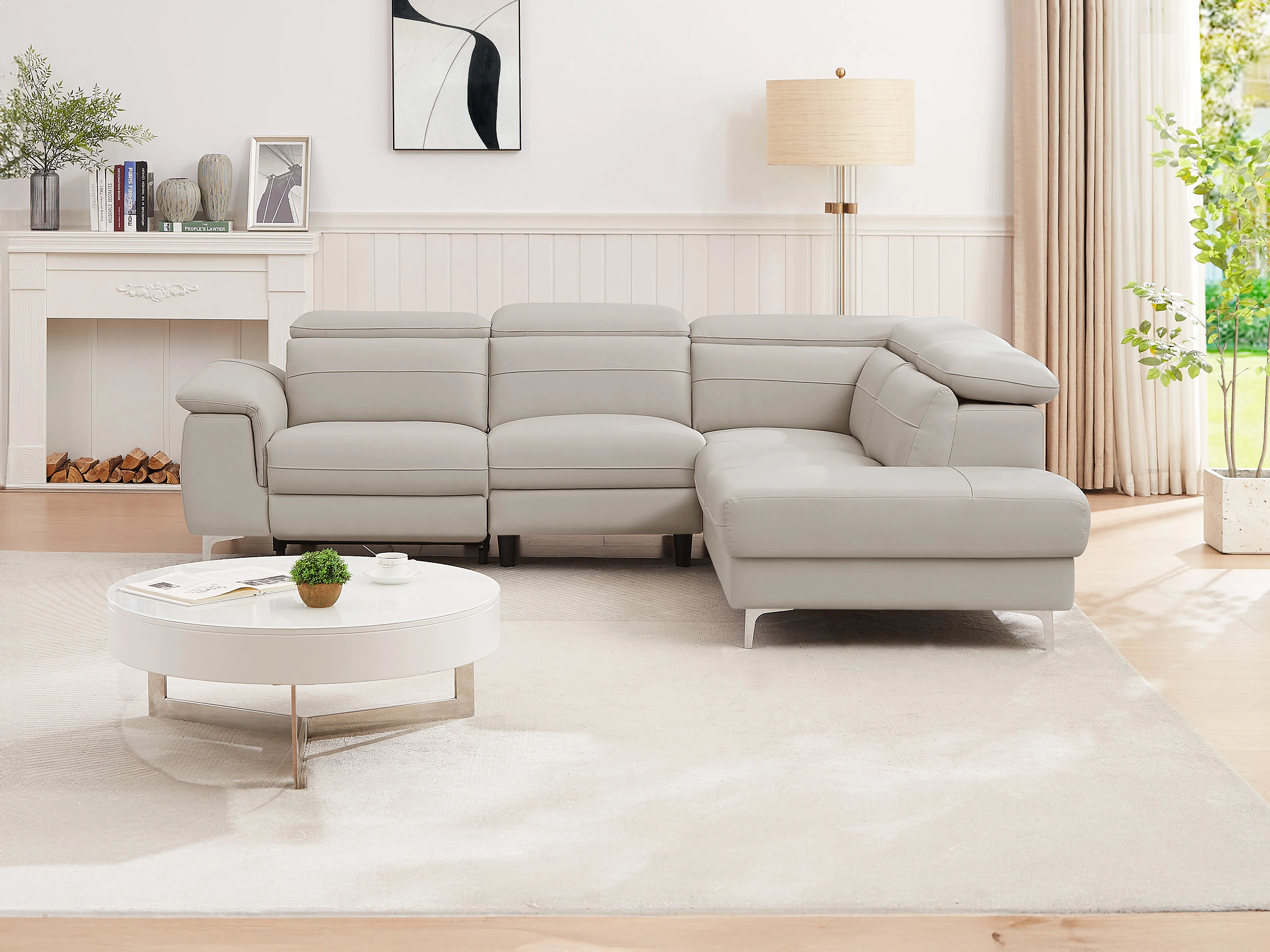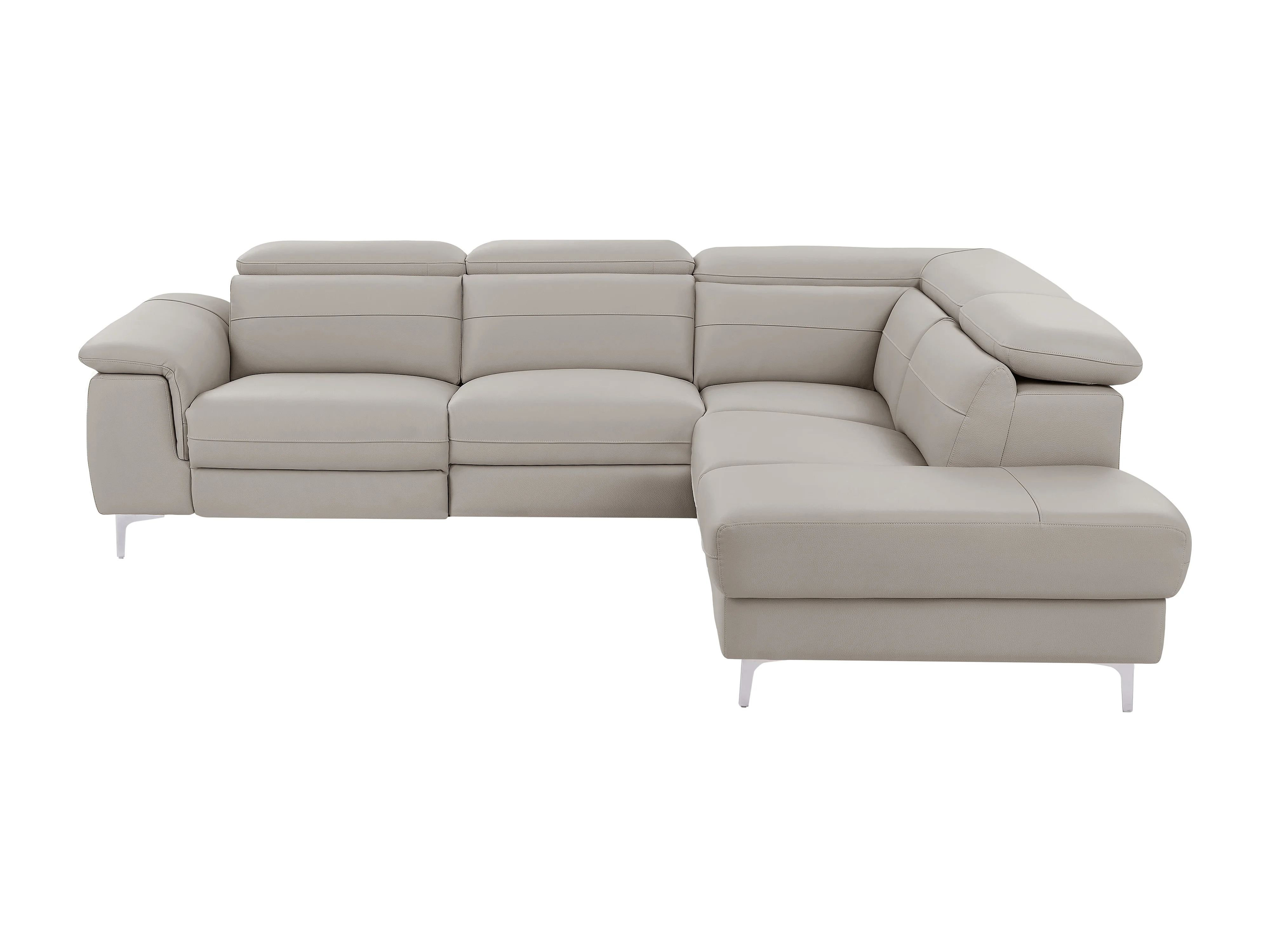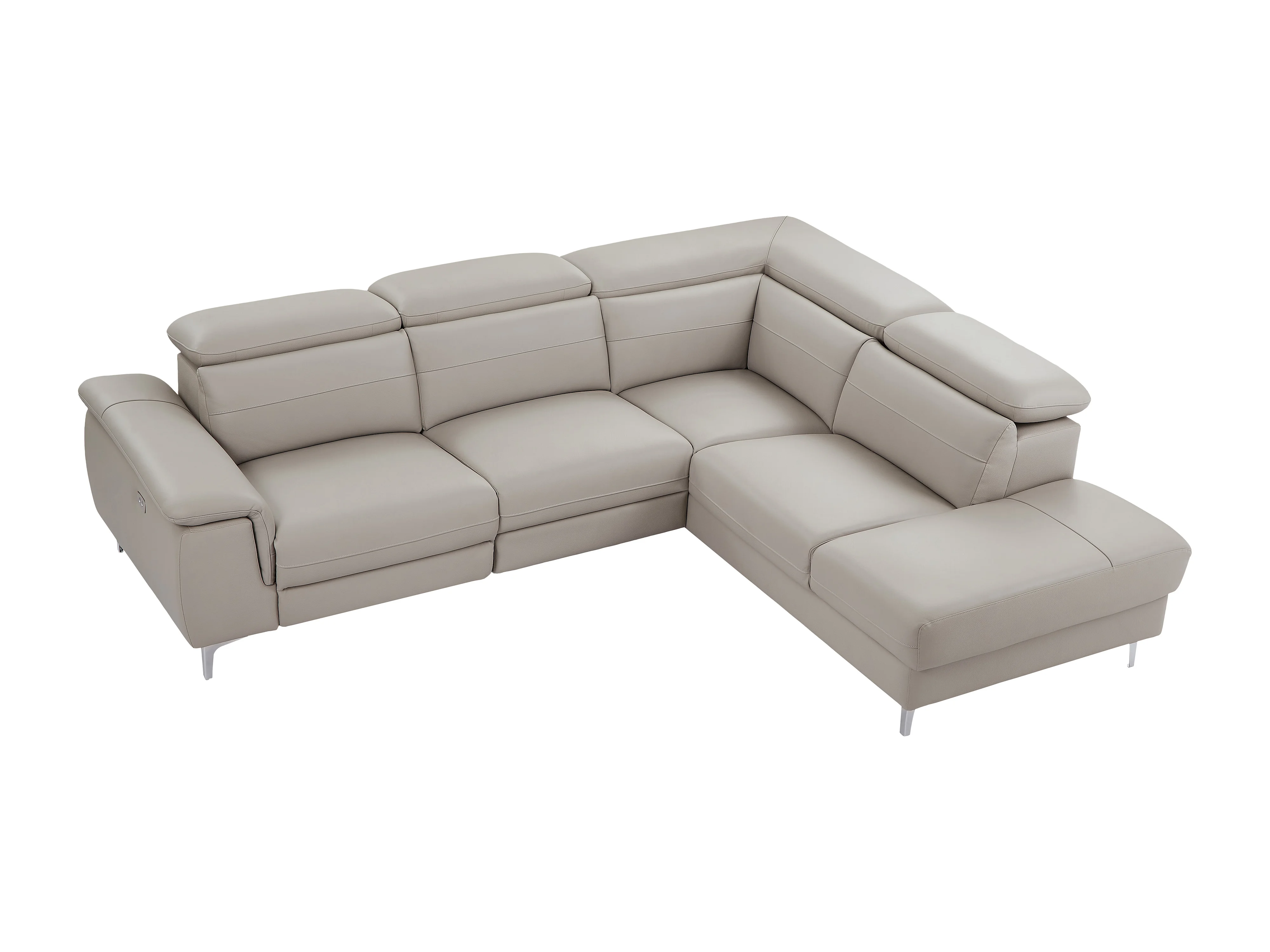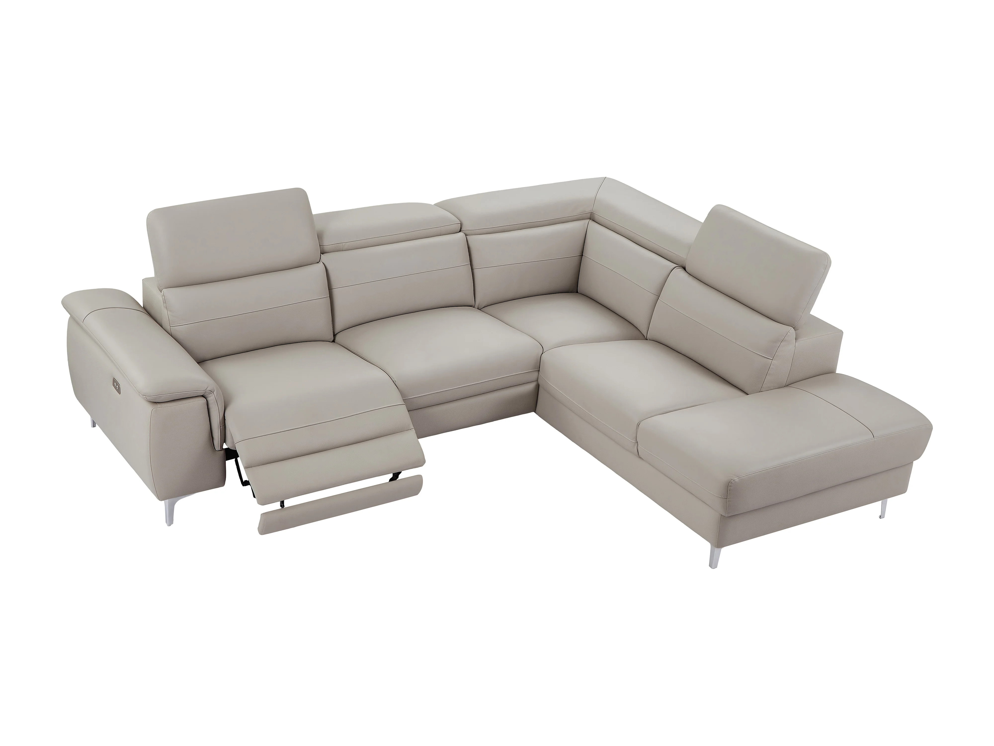 Elektriskt justerbar hörnsoffa i ljusgrått läder FUSINO (höger)