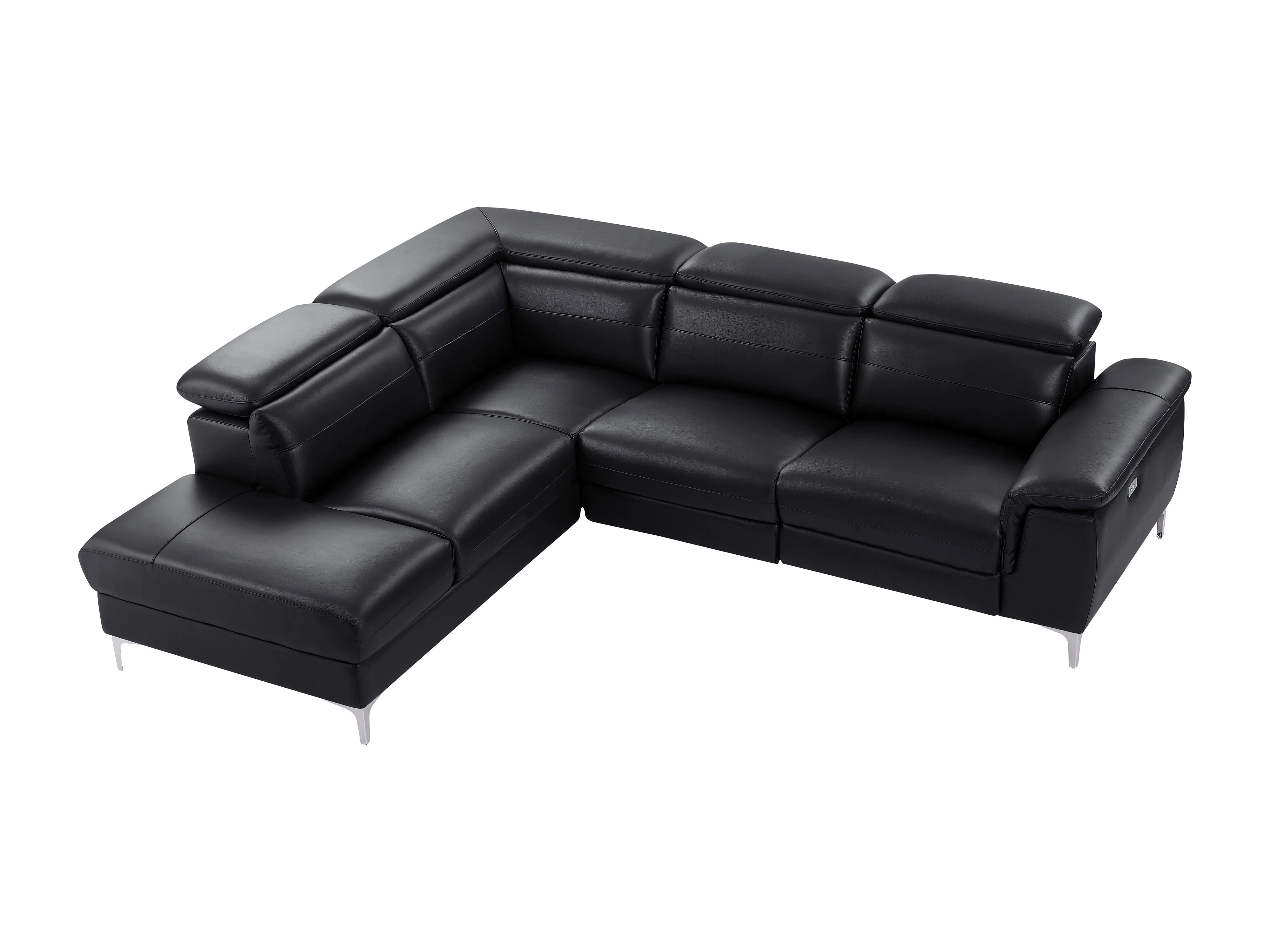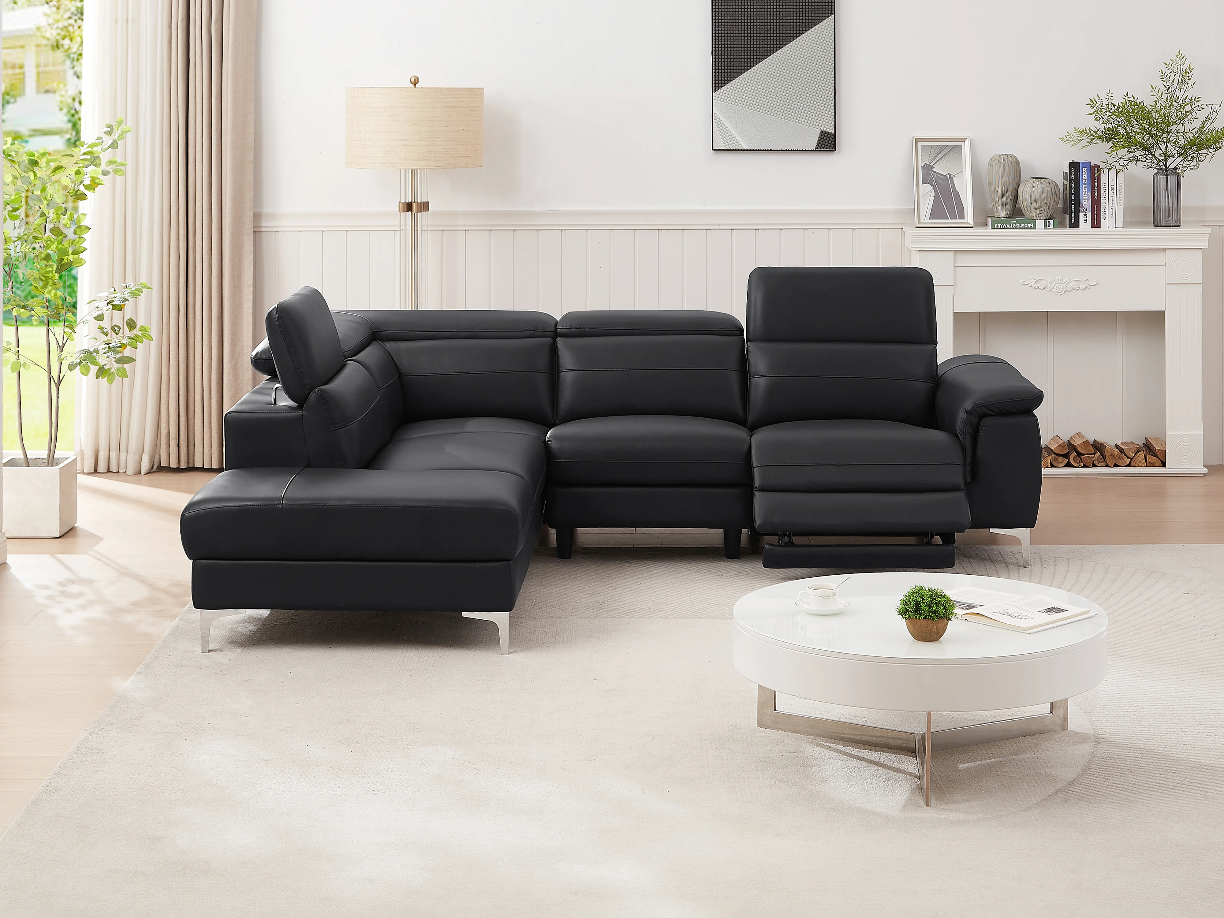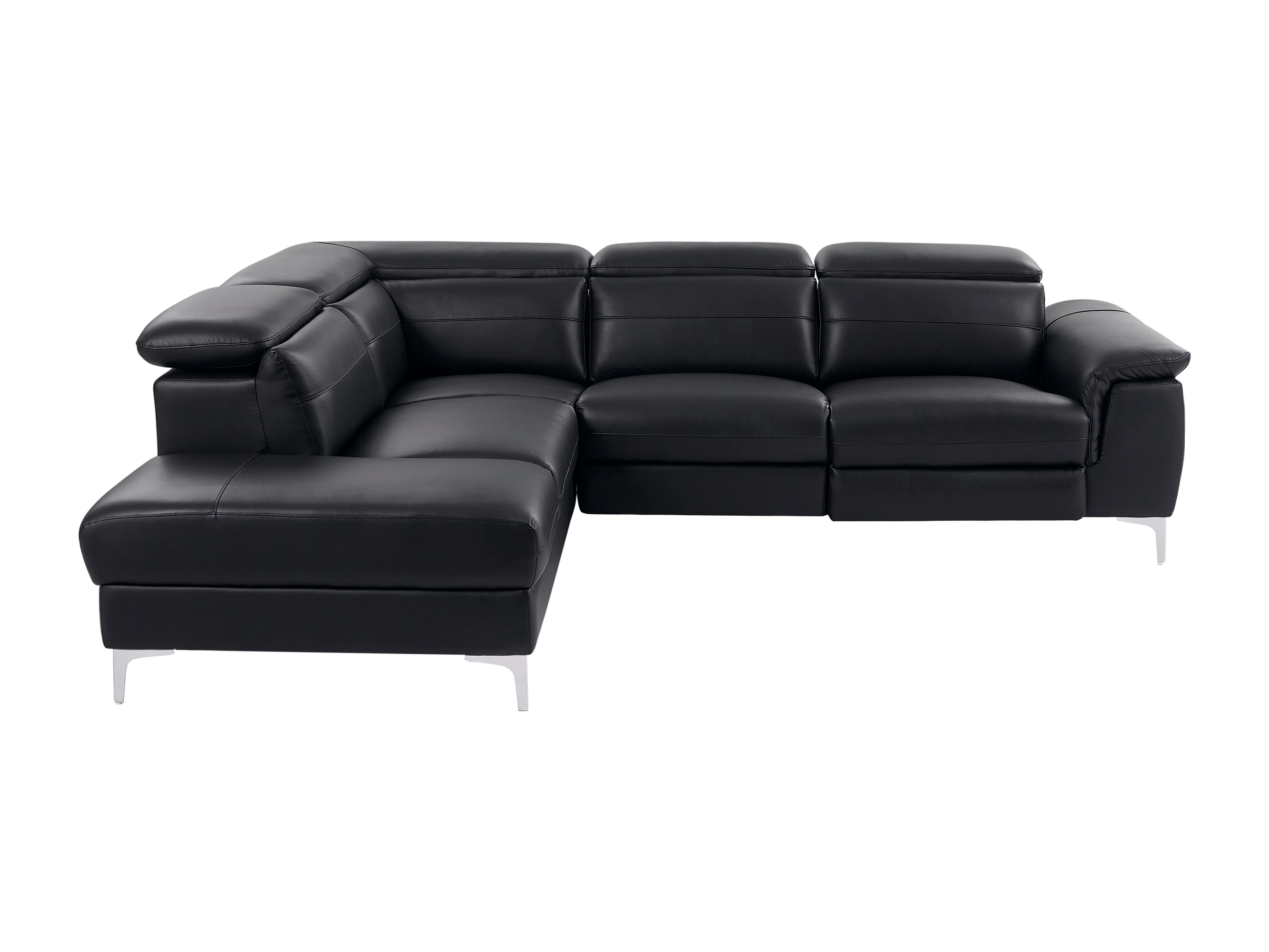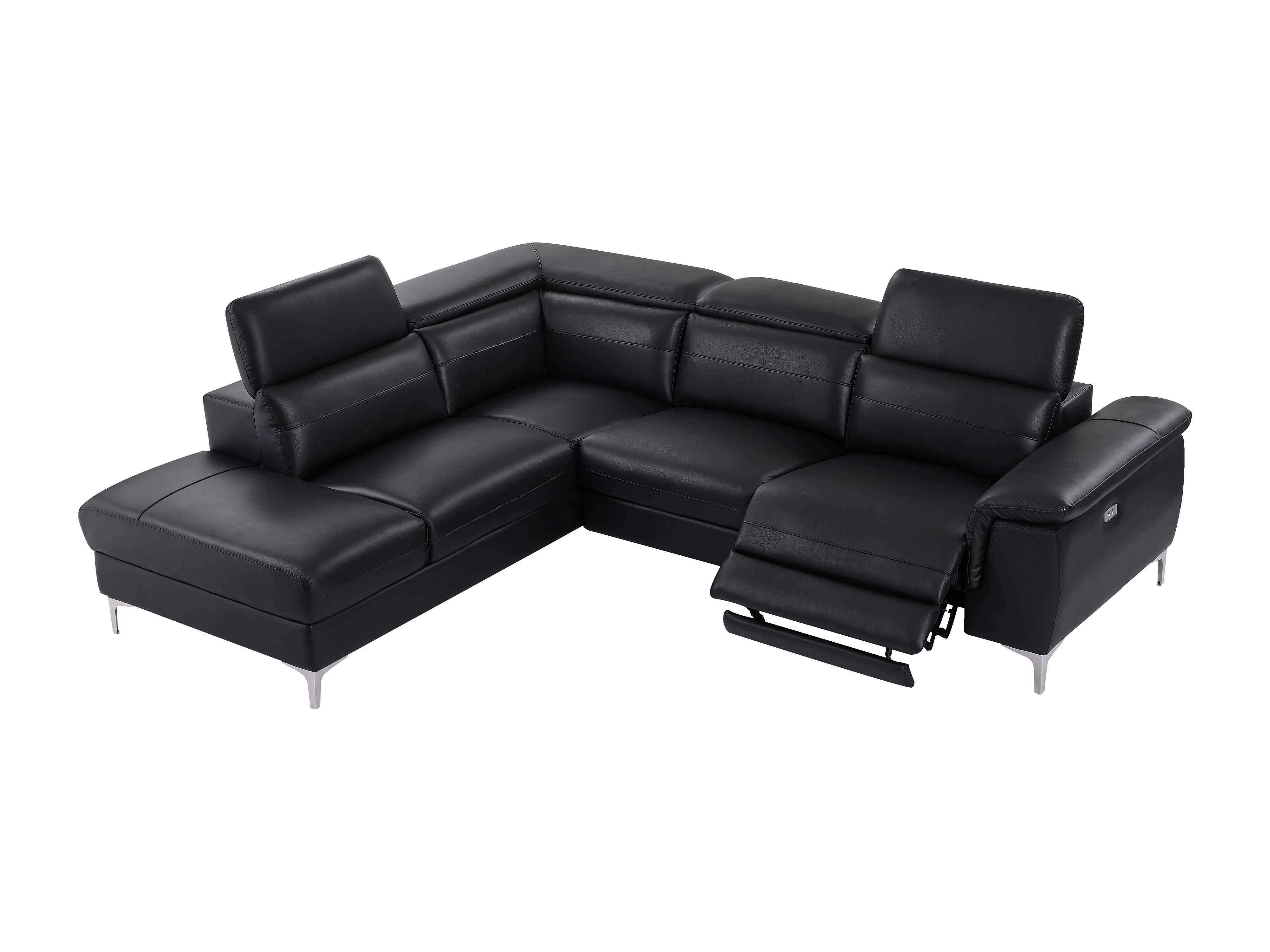 Vänstervänd hörnsoffa med elektrisk lutningsfunktion i svart läder FUSINO