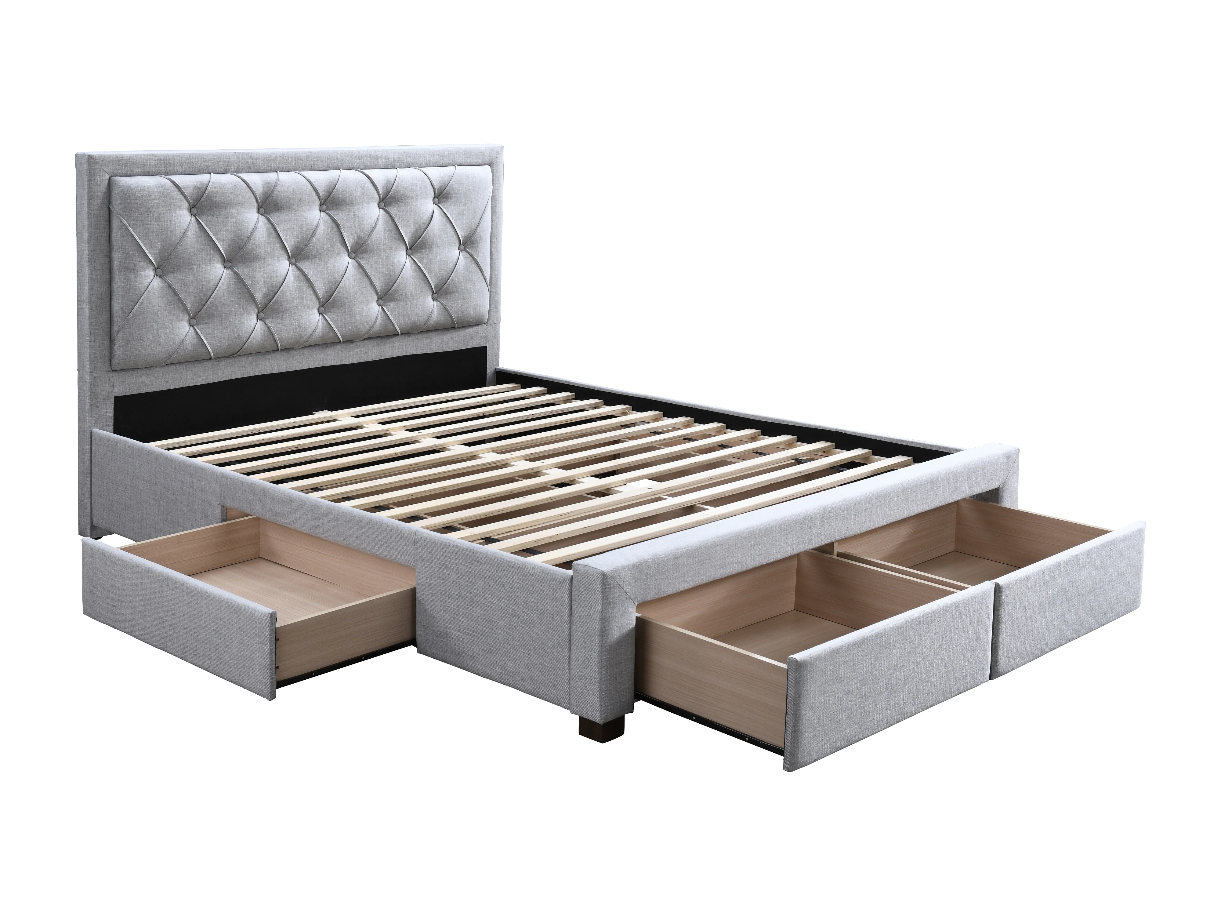 Säng med lådor 140 x 190 cm - Tyg - Ljusgrå - LEOPOLD