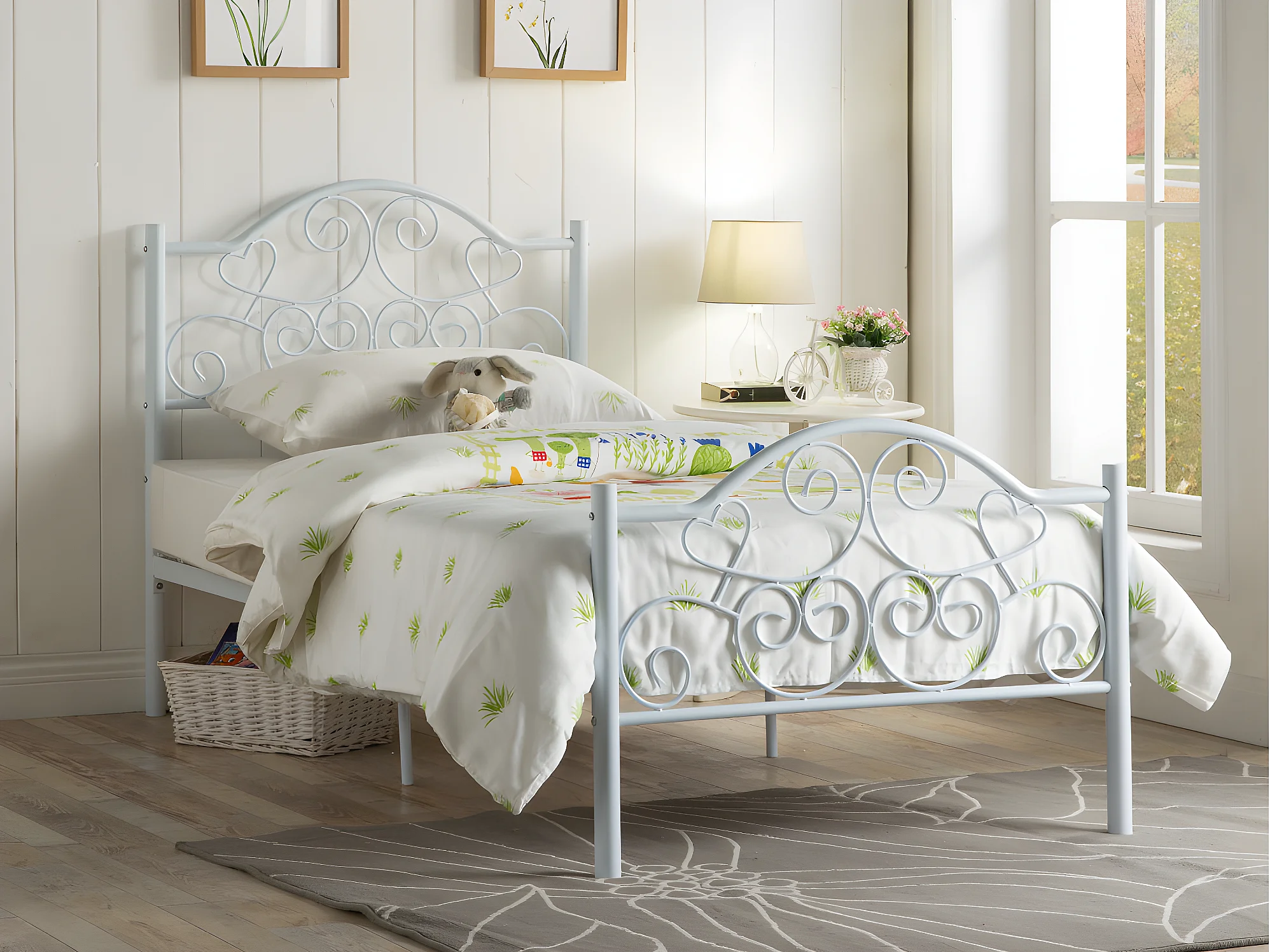 Säng LEYNA - 90 x 190 cm - Metall - Vit