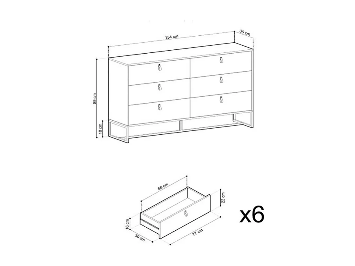 Byrå - 6 lådor - Valnöt och antracit - MALONSKI
