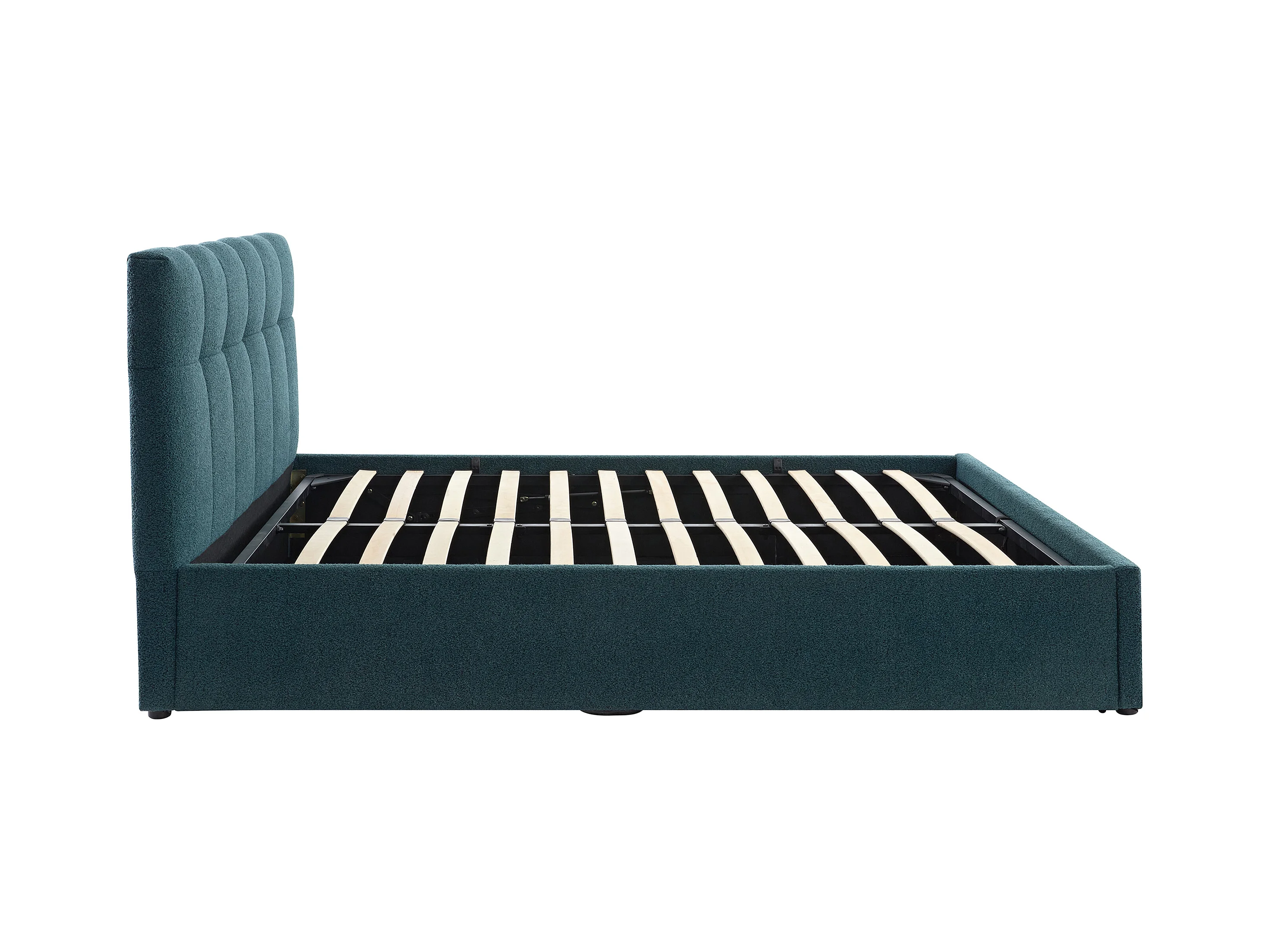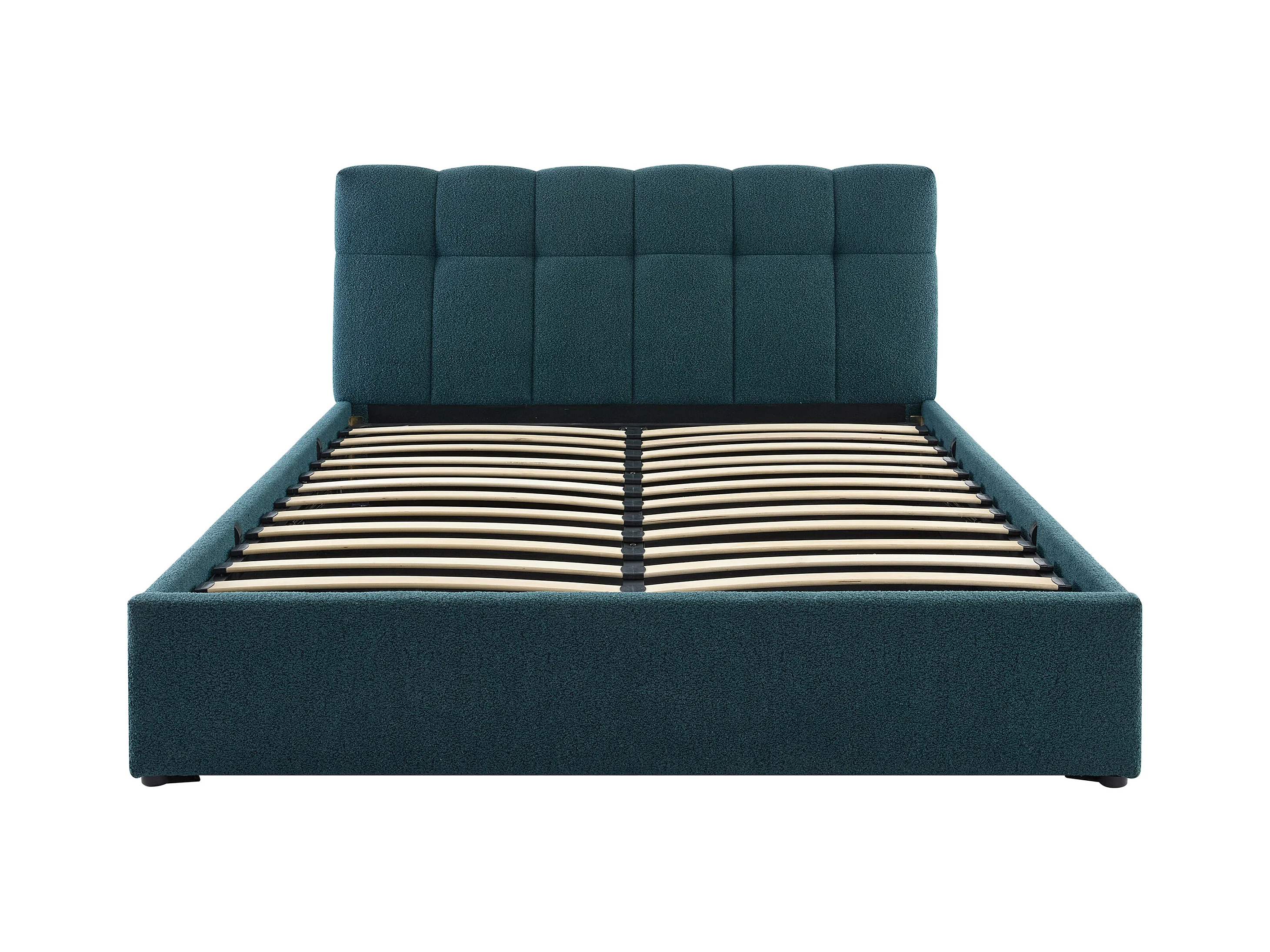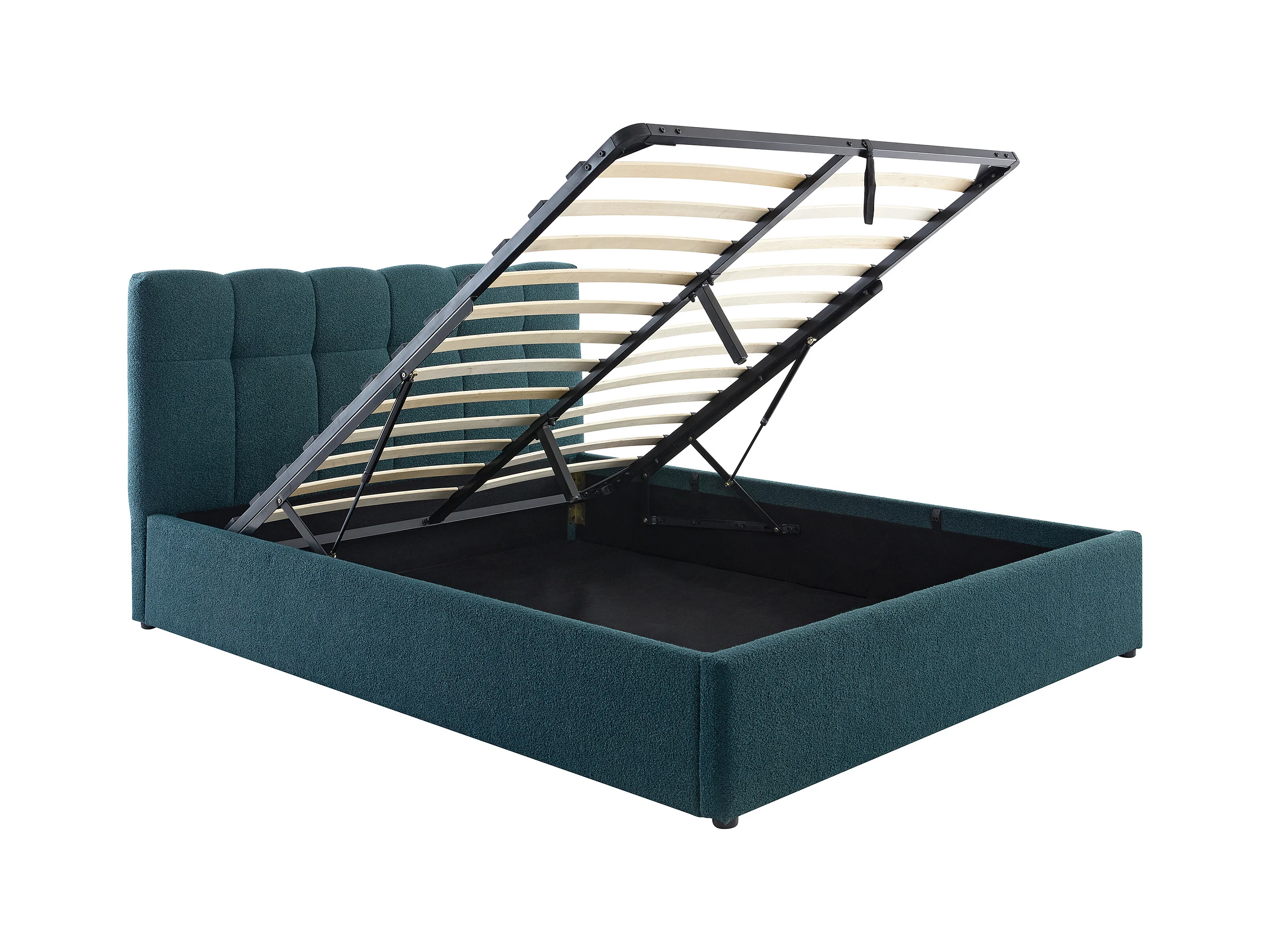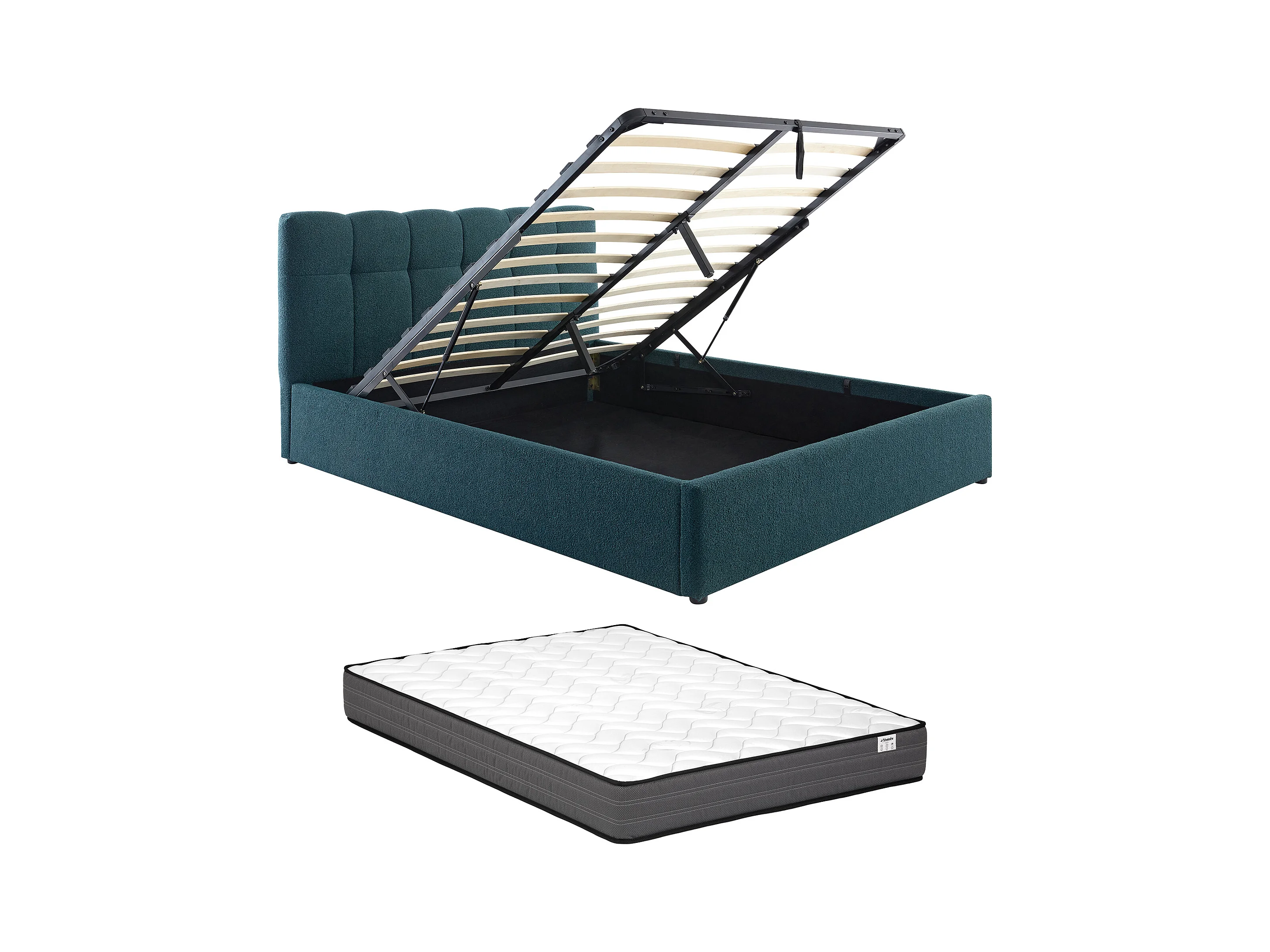 Sängram med förvaring 160 x 200 cm - Bouclé-tyg - Petrolblå + Madrass - MAZIRI