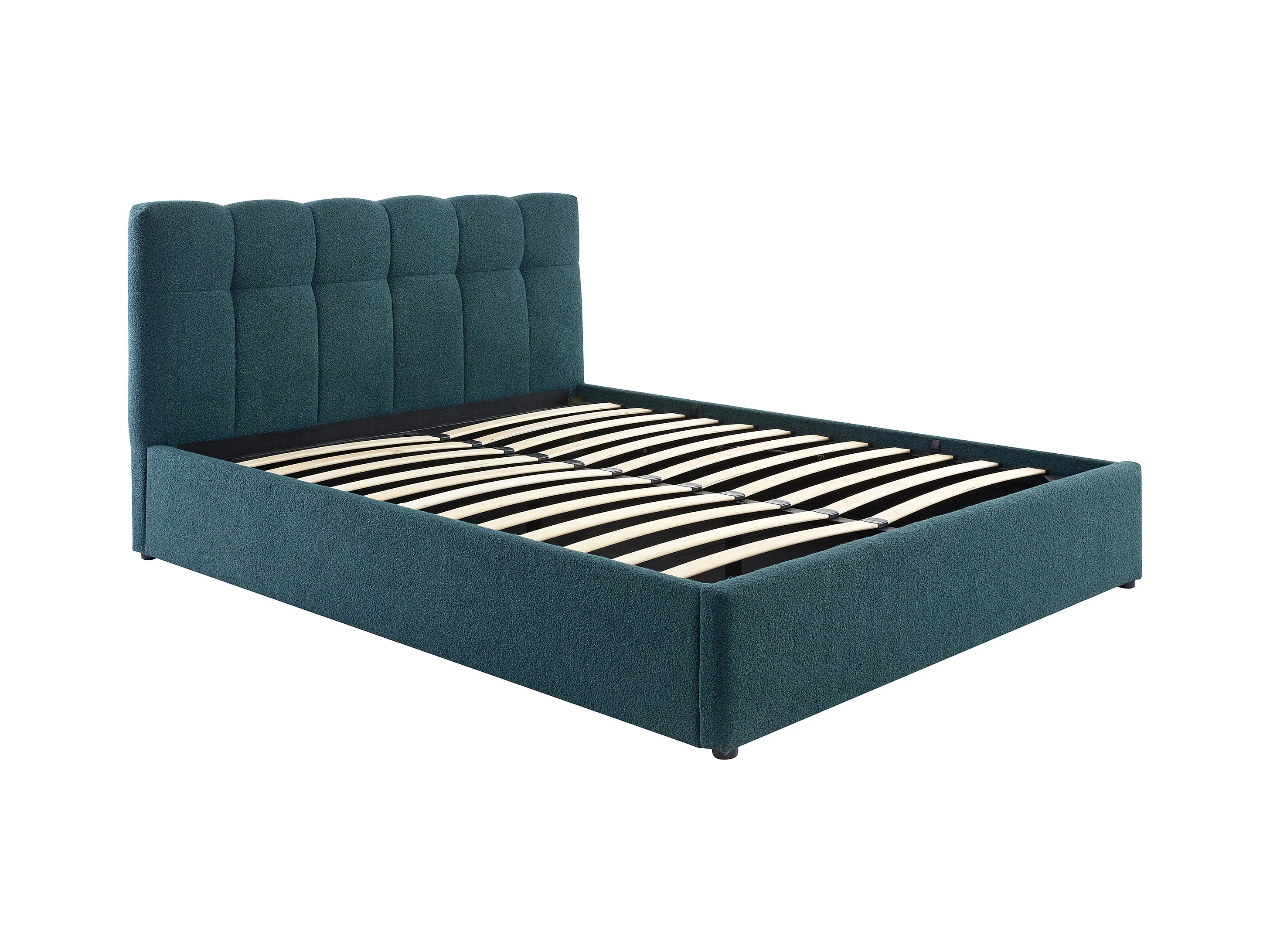 Sängram med förvaring 160 x 200 cm - Bouclé tyg - Petrolblå - MAZIRI