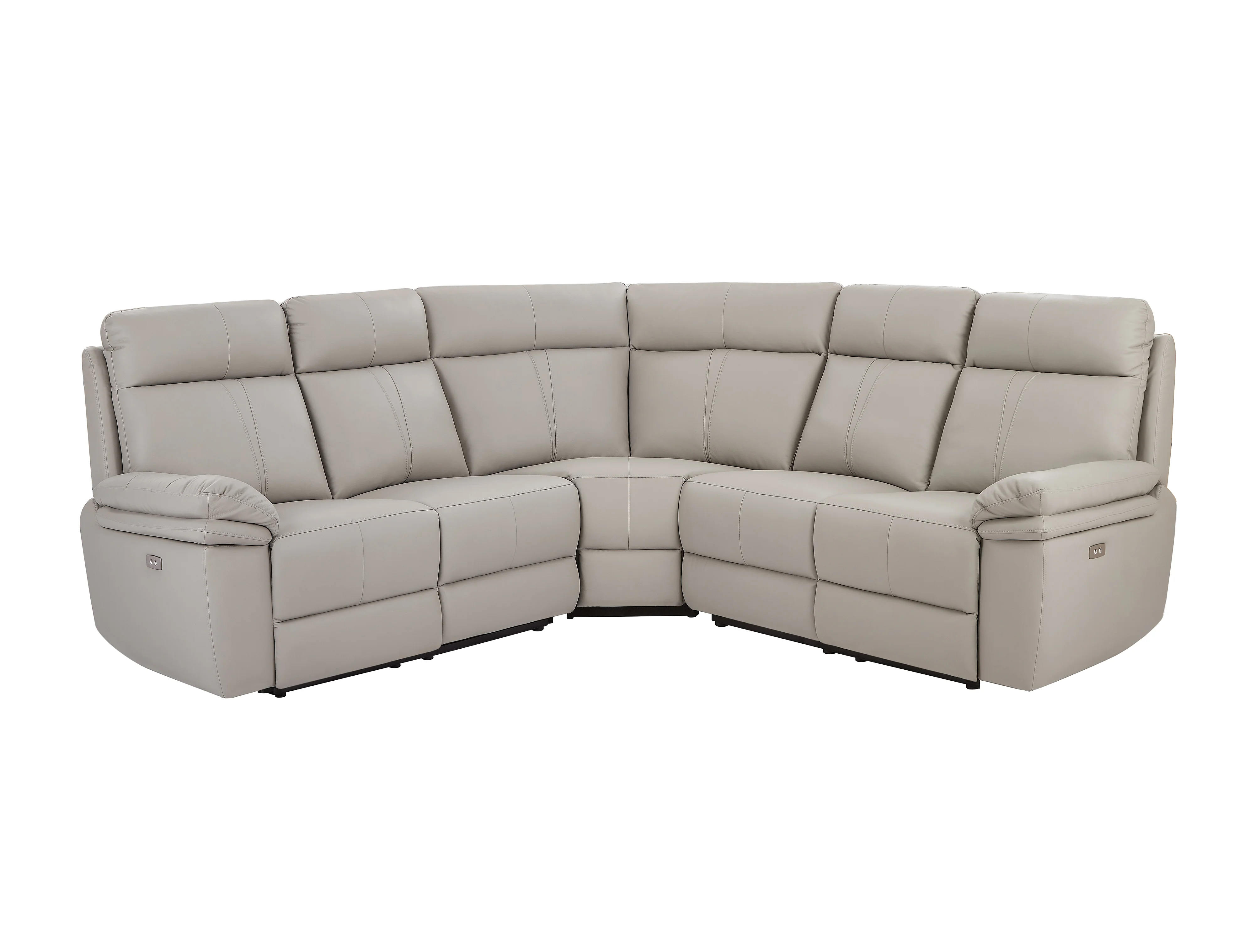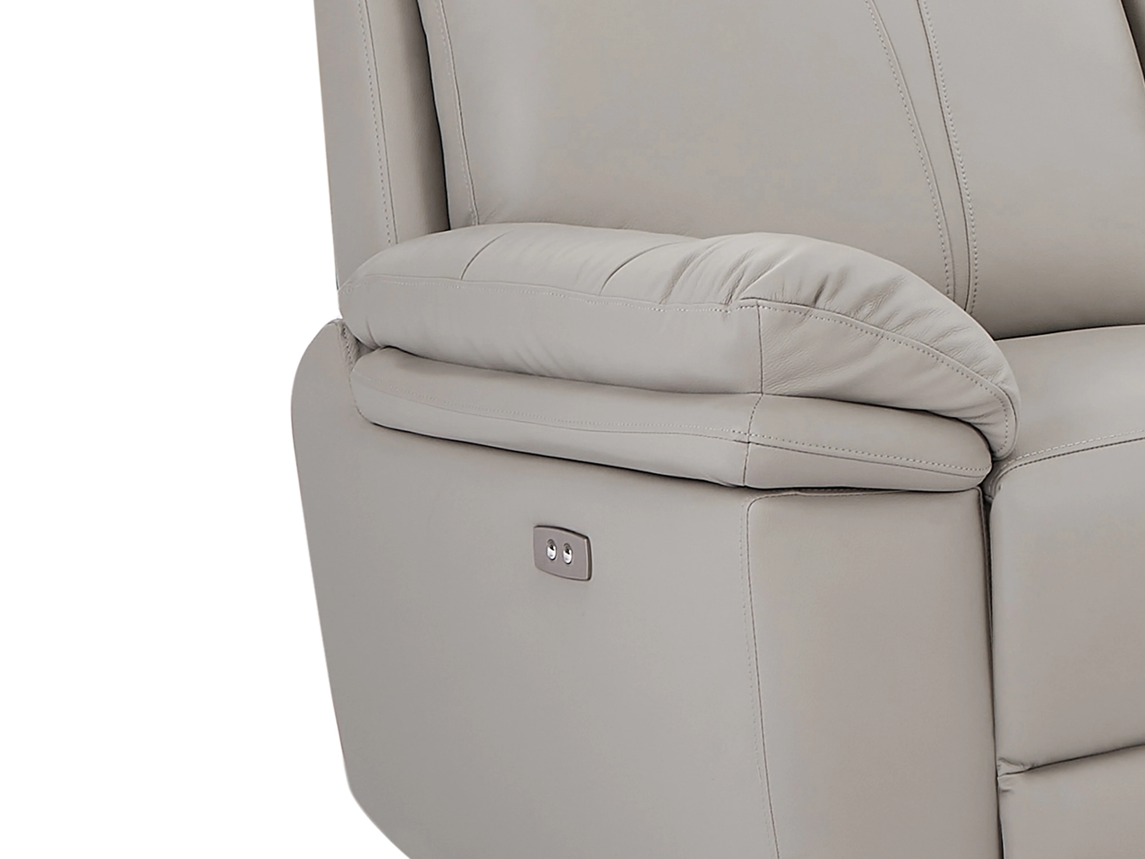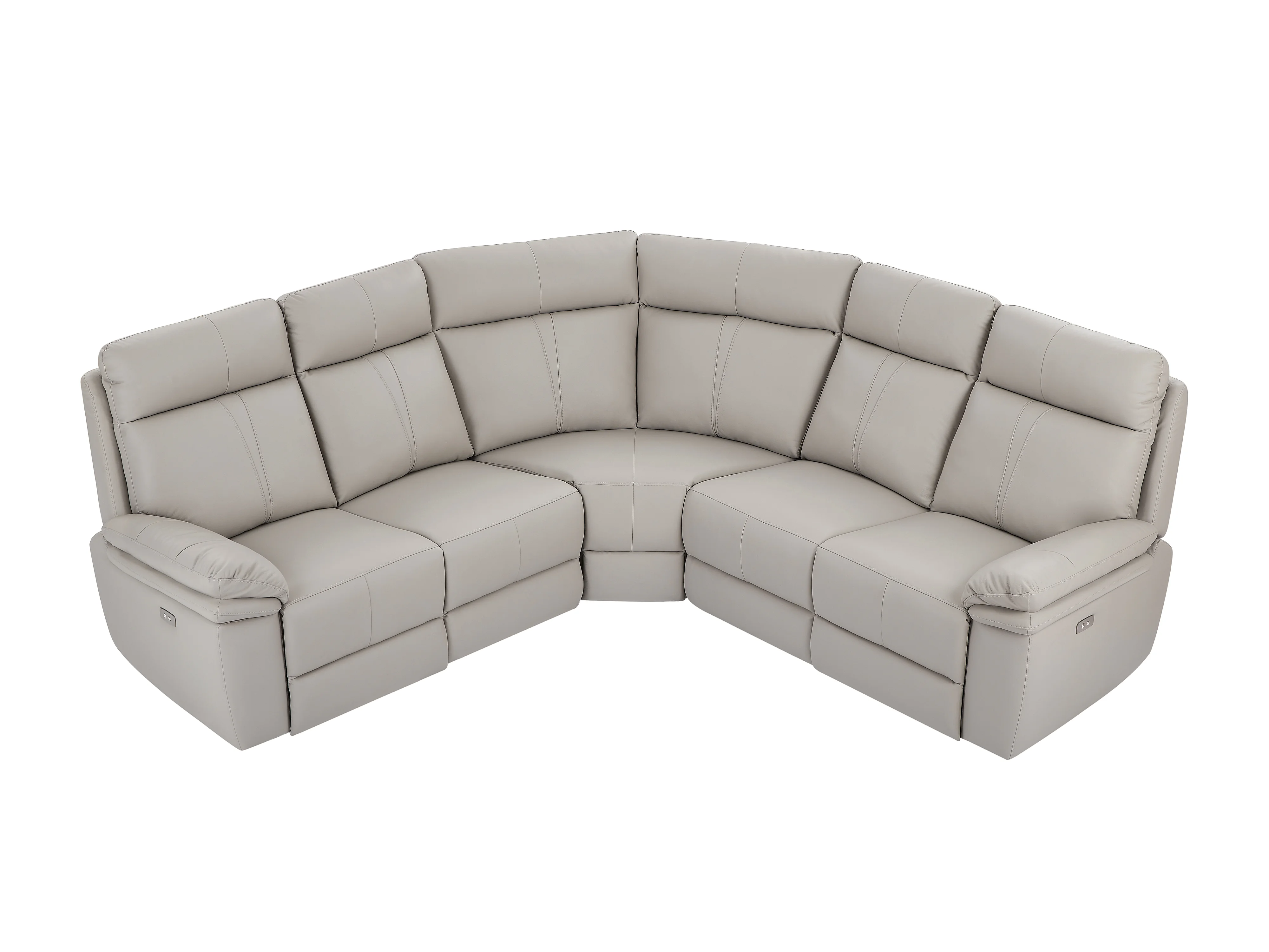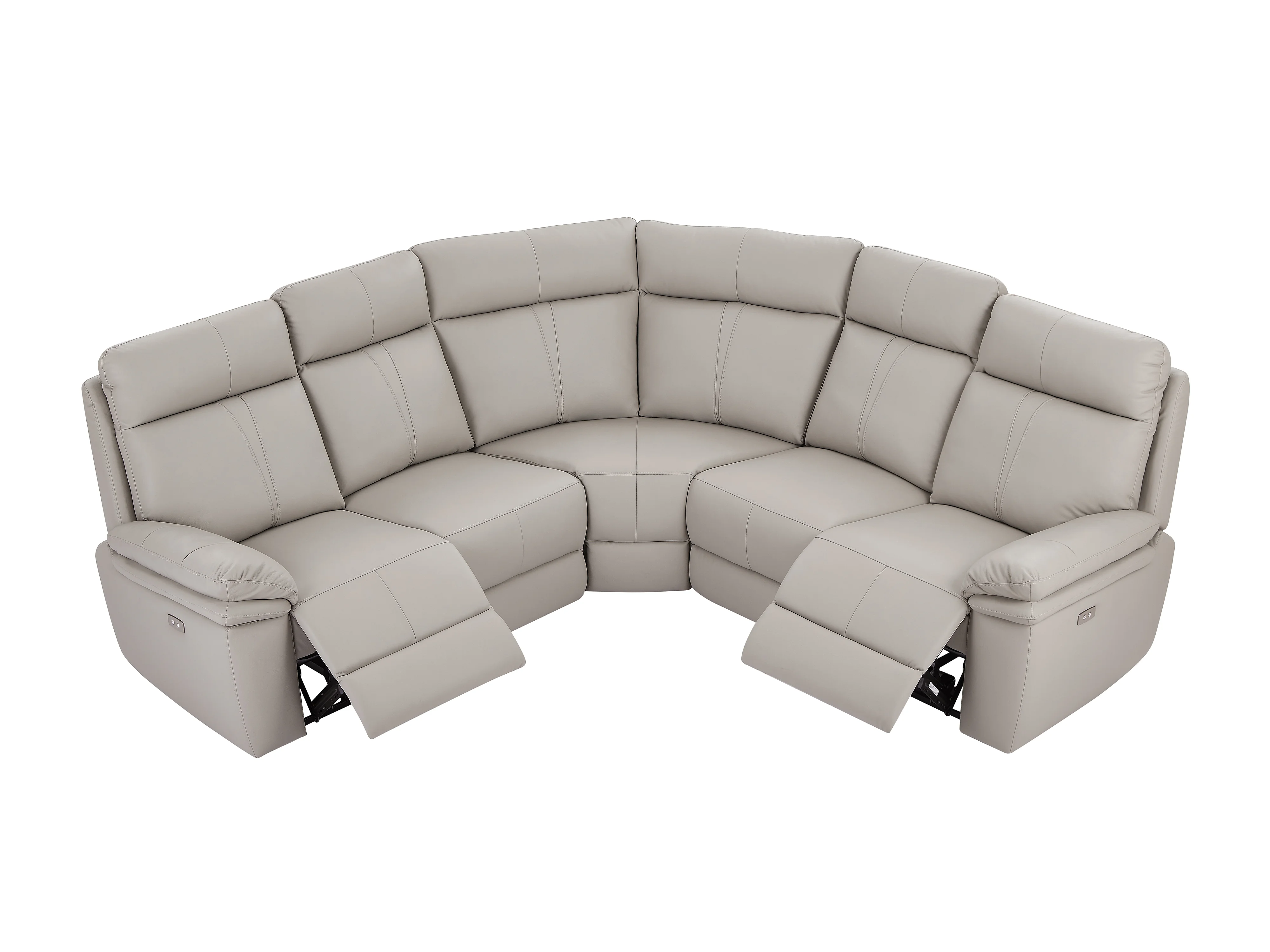 Ljusgrå elektrisk läderhörnsoffa MESOLA med relaxfunktion