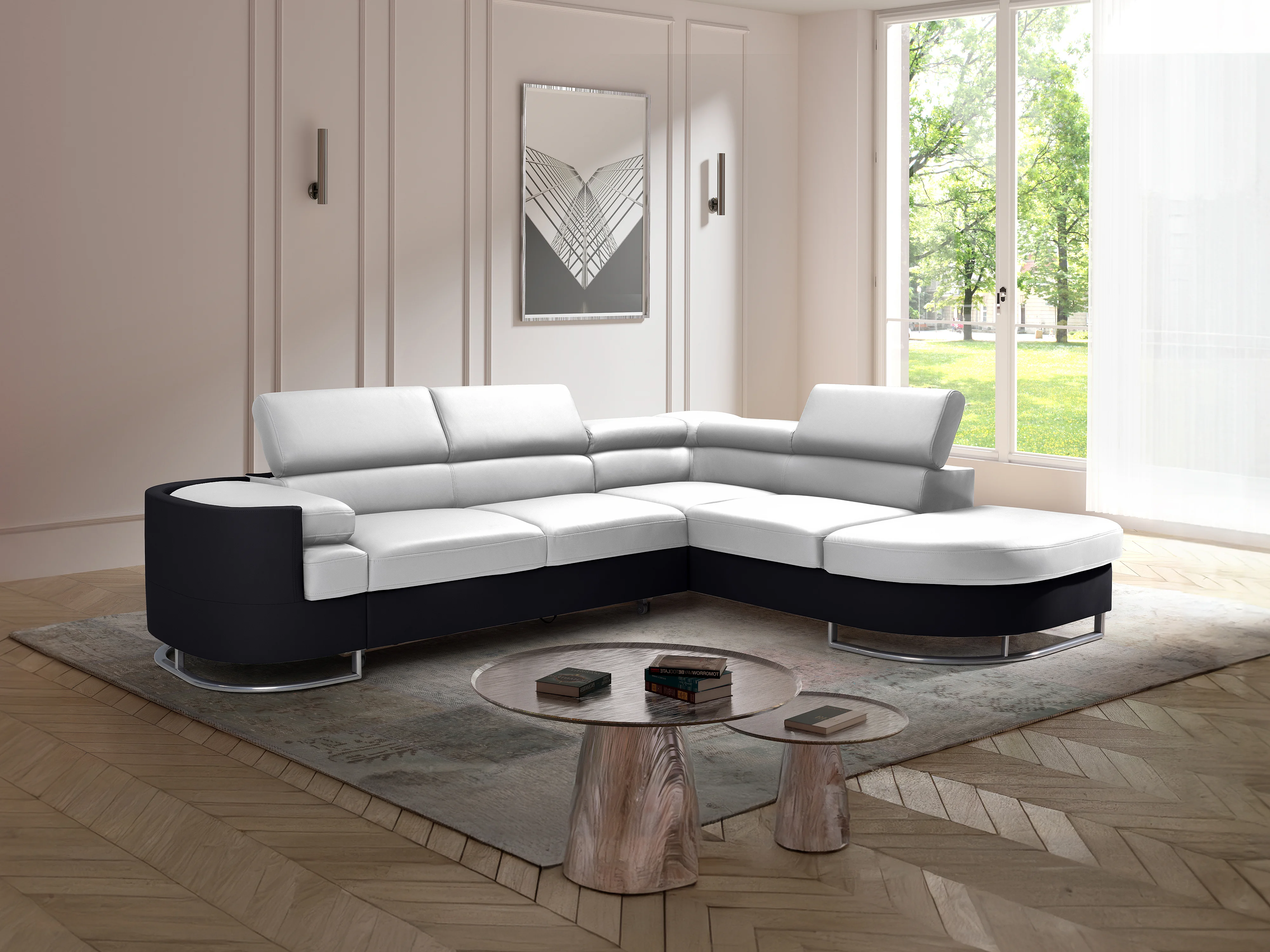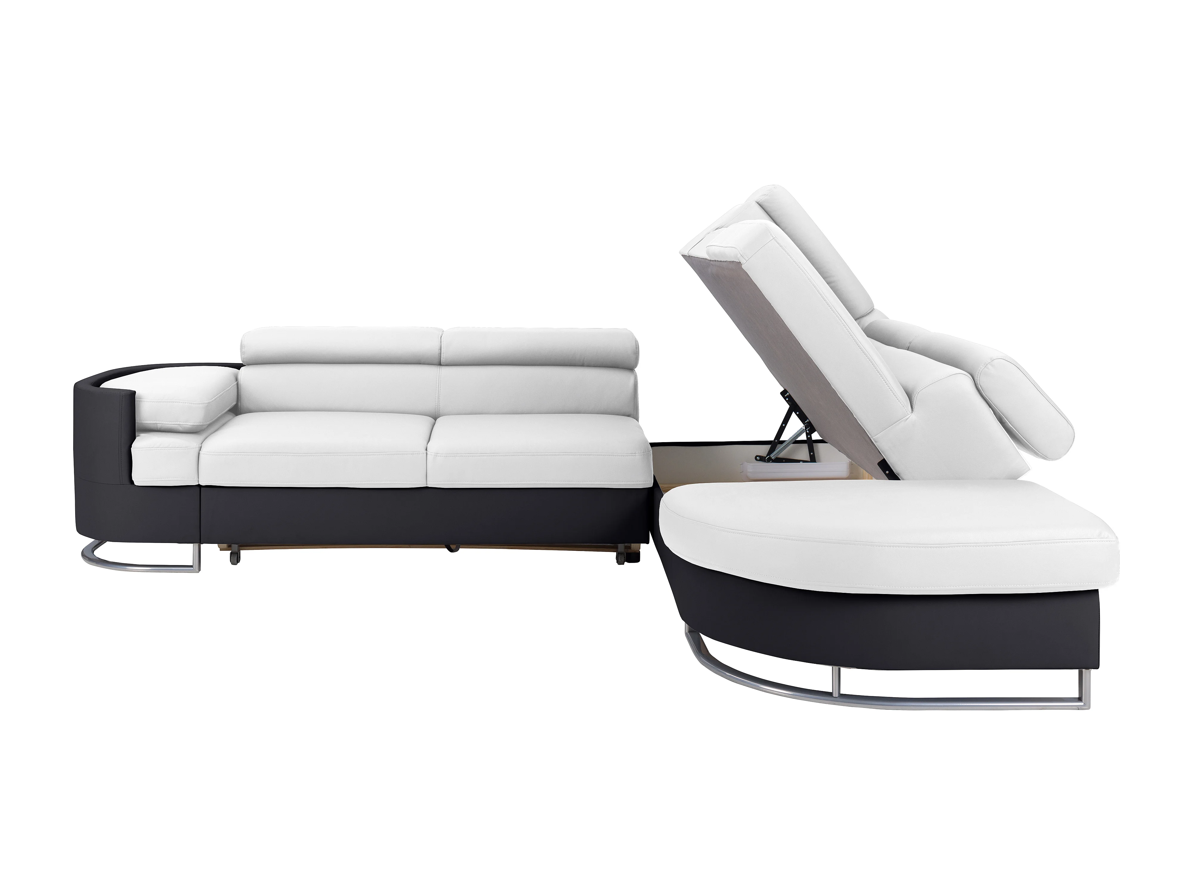 Högerställd soffbädd i vitt och svart PU-läder MYSEN II