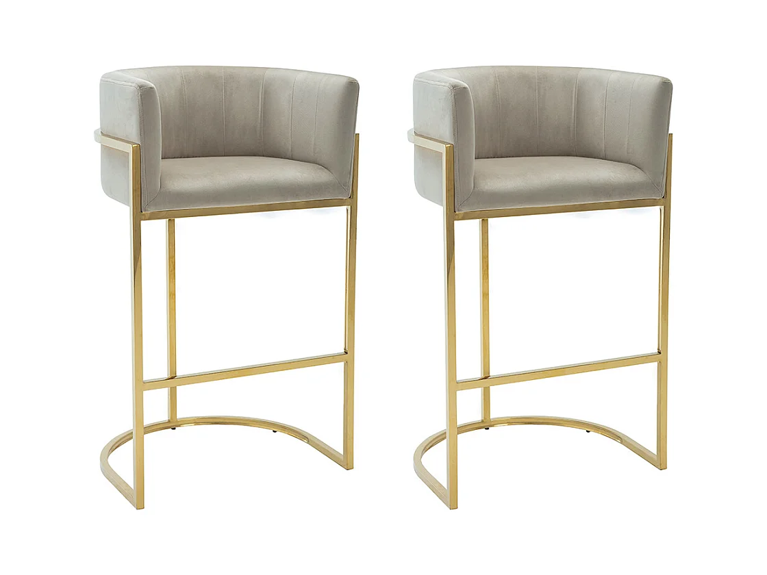 Set med Kumpikrukksdjuptt 2 barstolar i sammet och rostfritt stål - Beige och guldfärgad - PERIA av Pascal MORABITO
