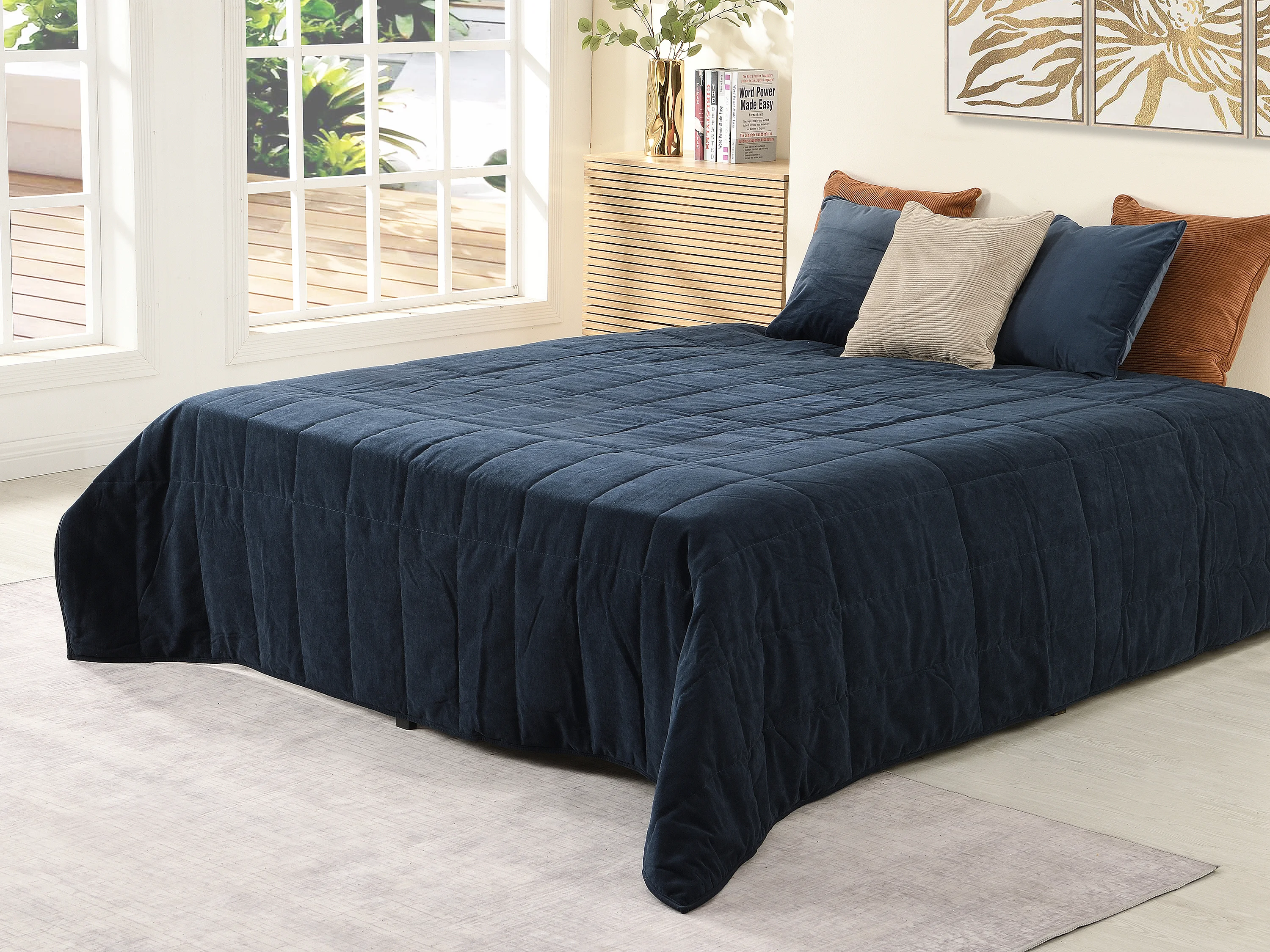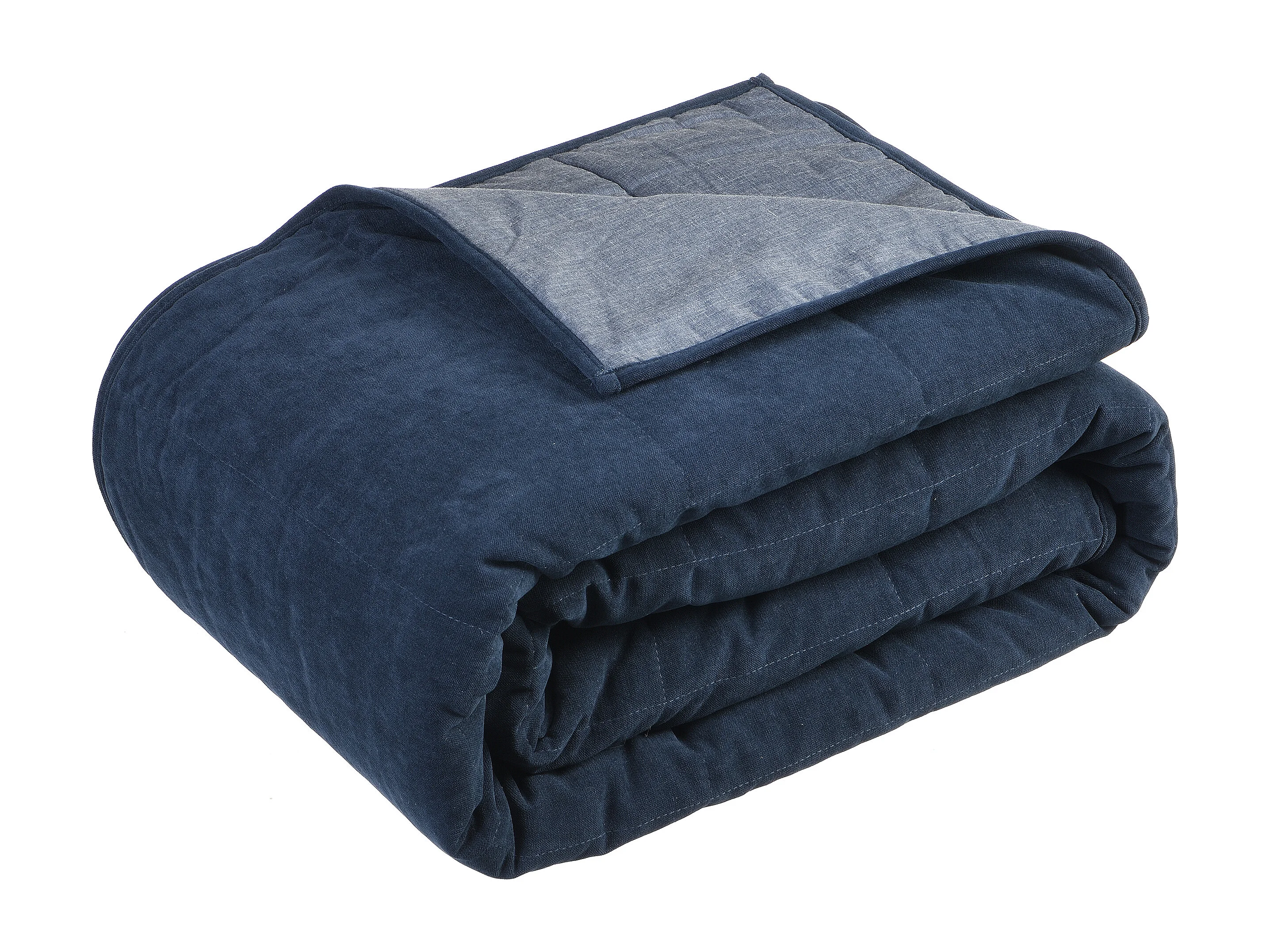 Quiltad sammetssängöverkast - 220 x 225 cm - Marinblå - PRILIO