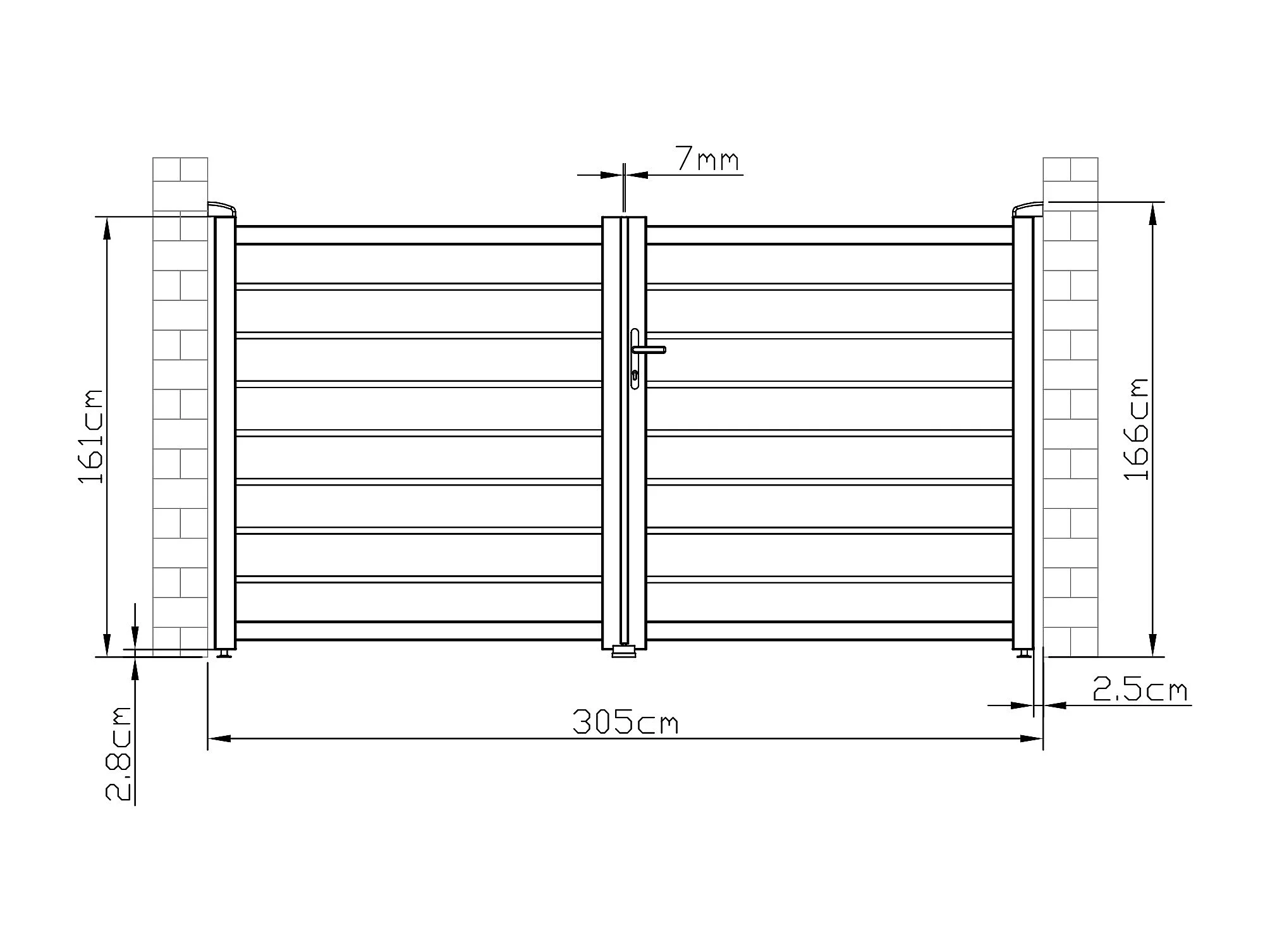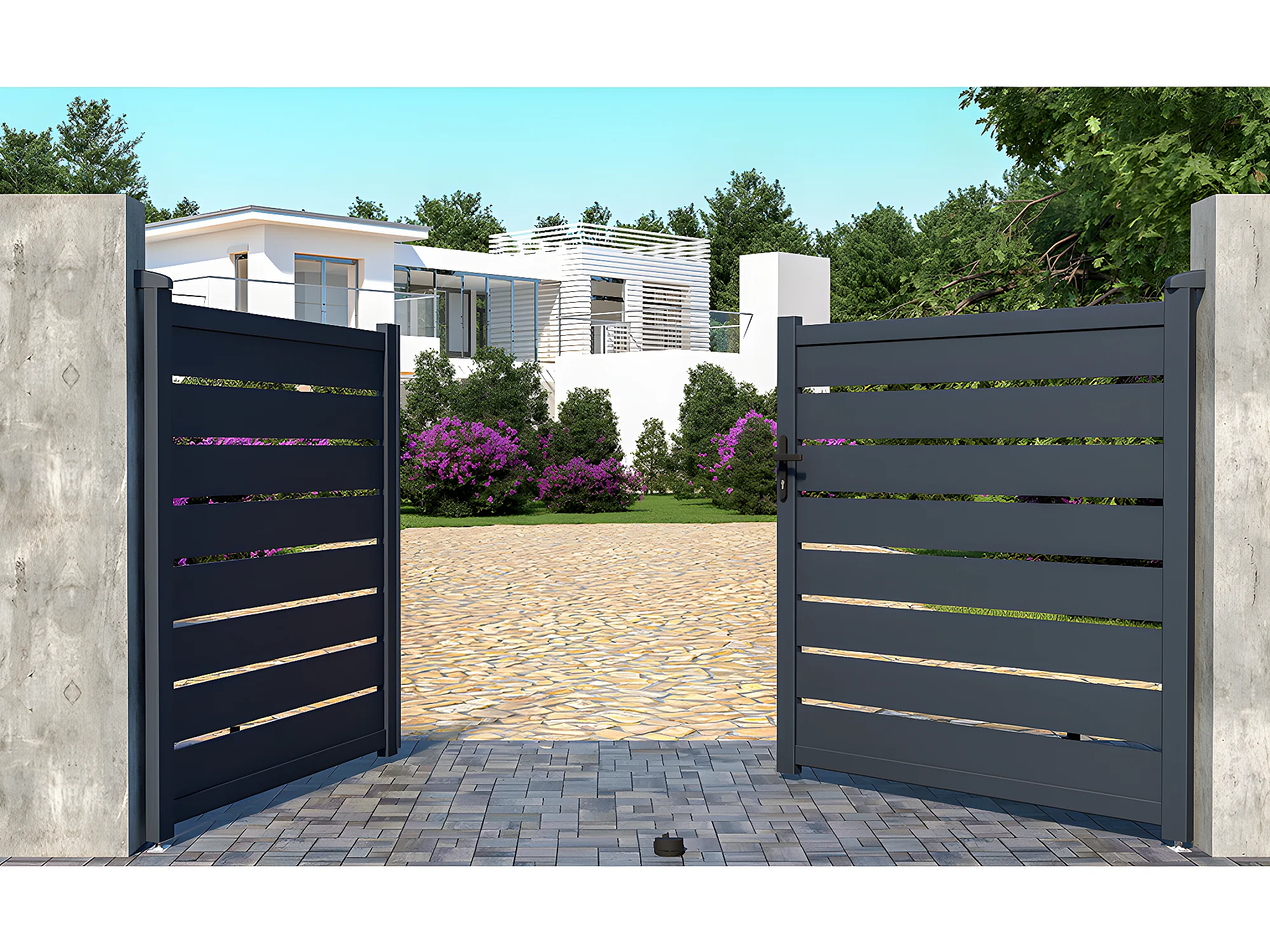 Elektrisk vridbar aluminiumgrind med mellanrum L305 x H166 cm antracitgrå - PRIMO