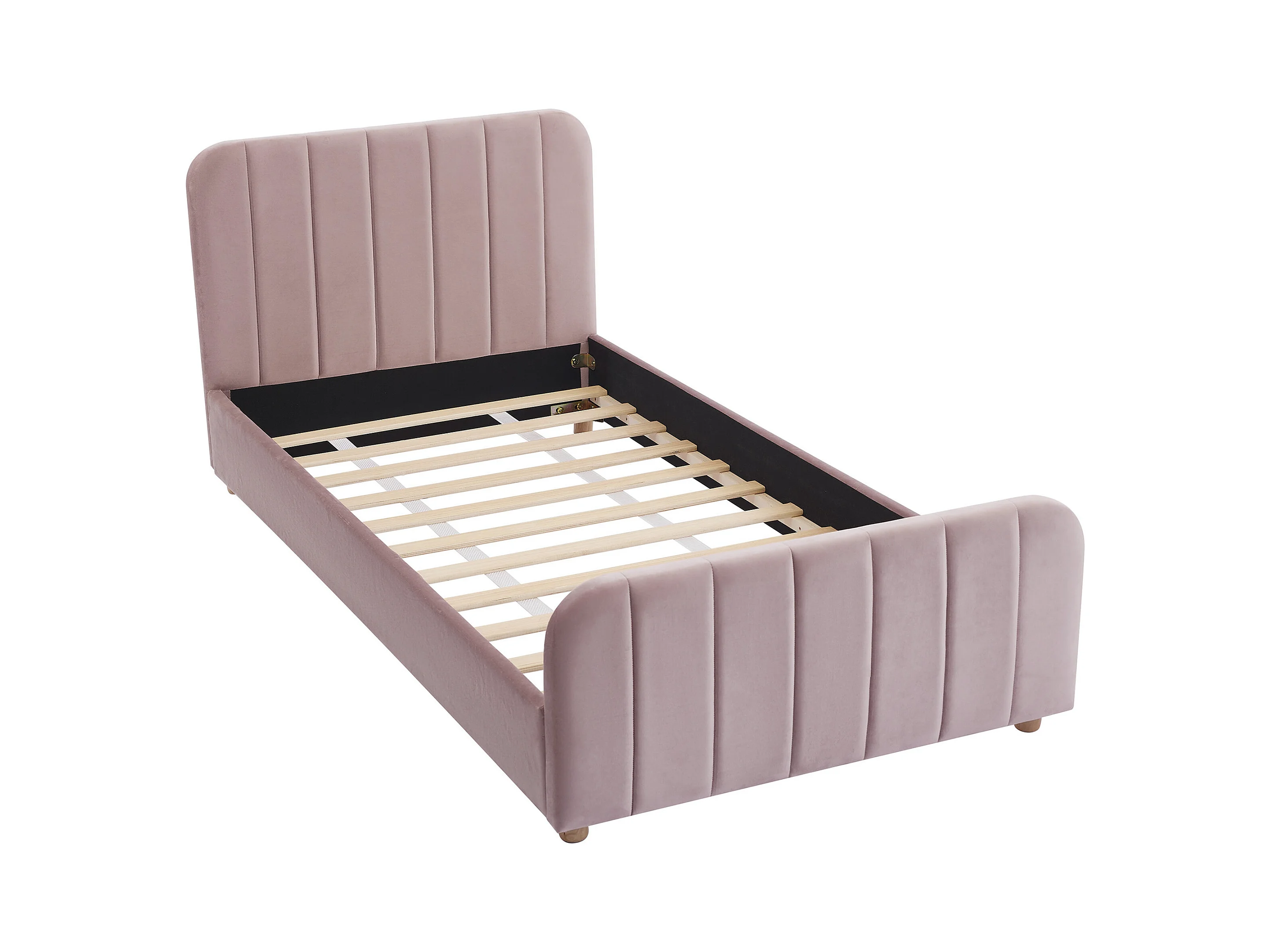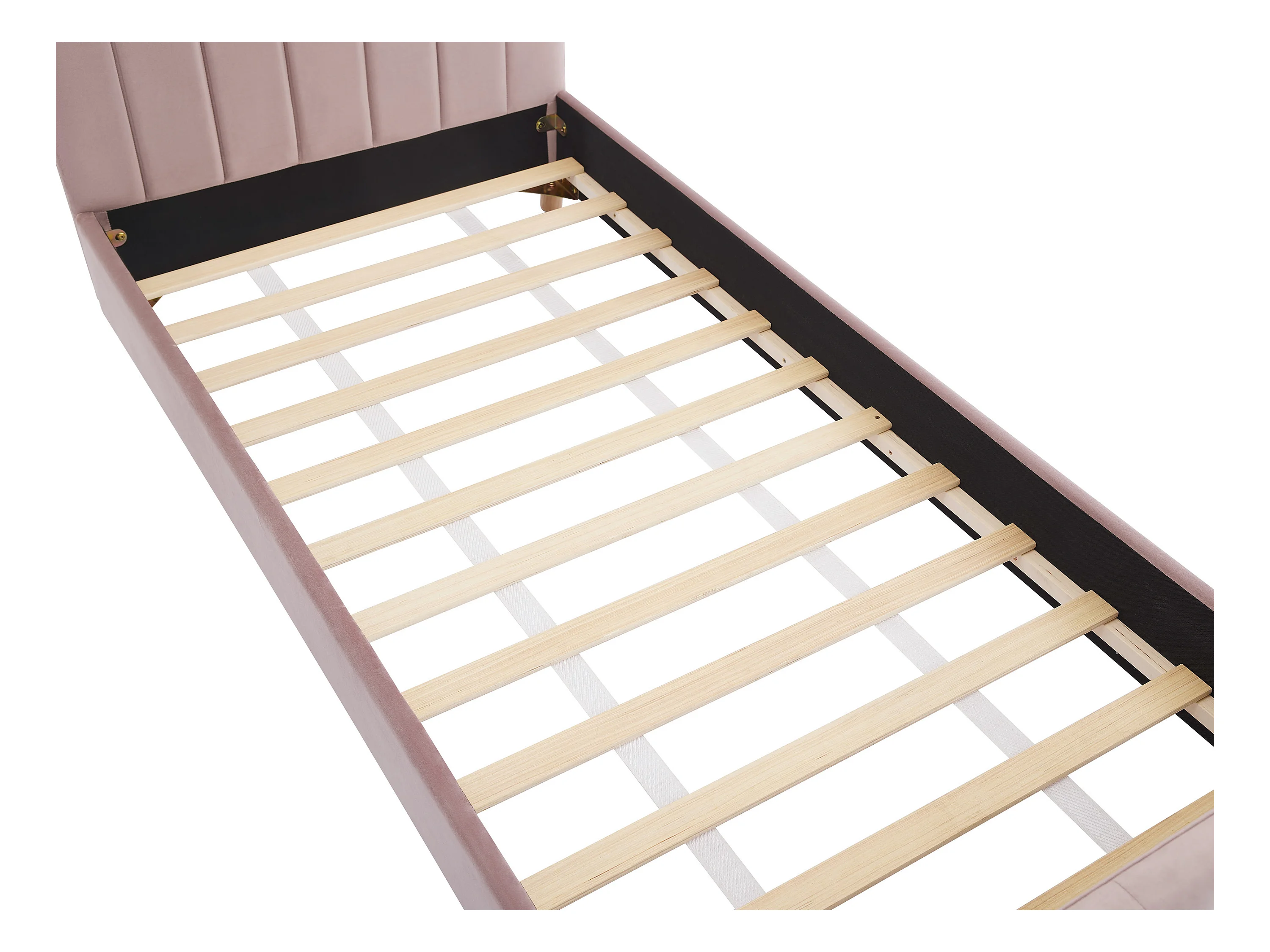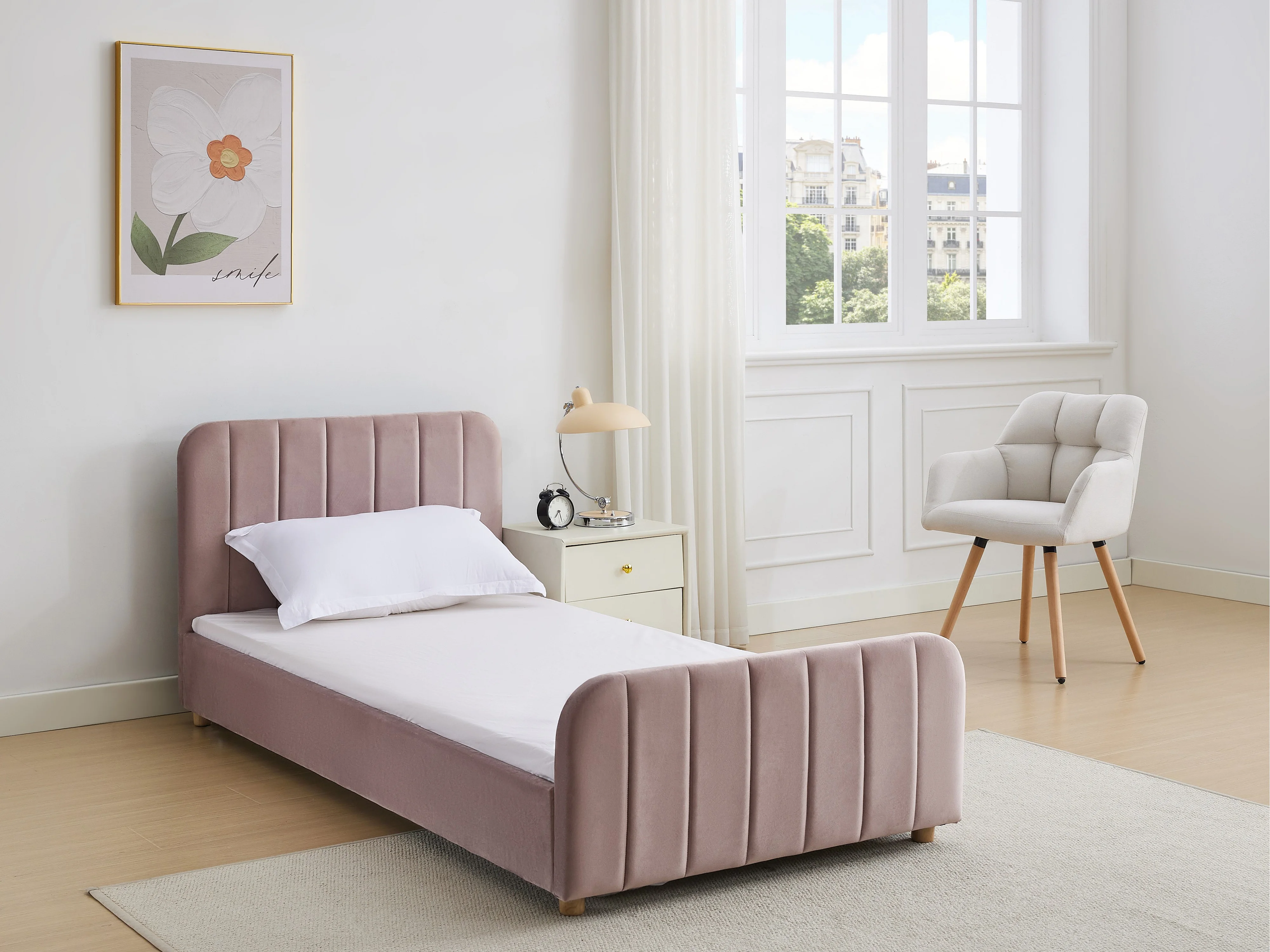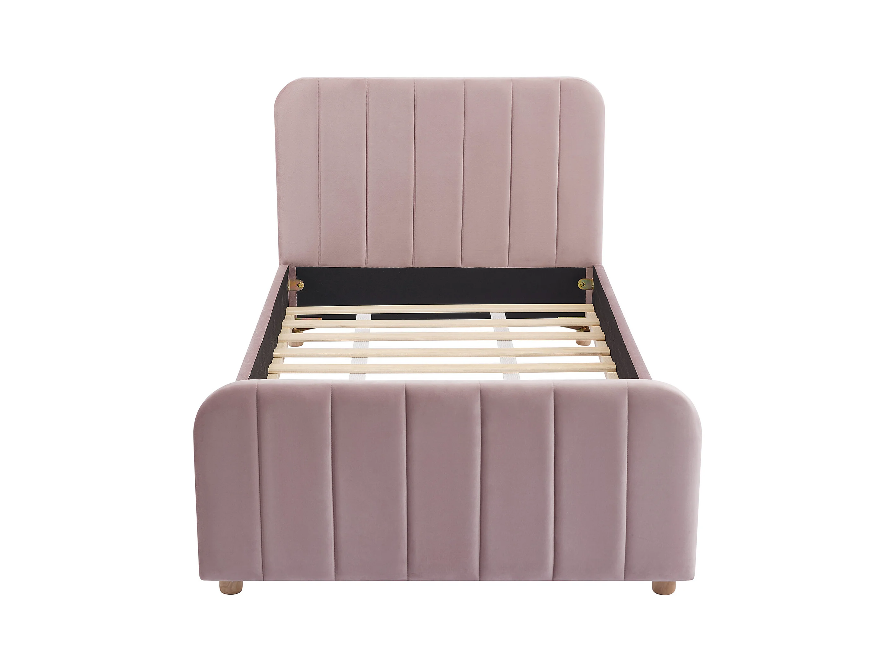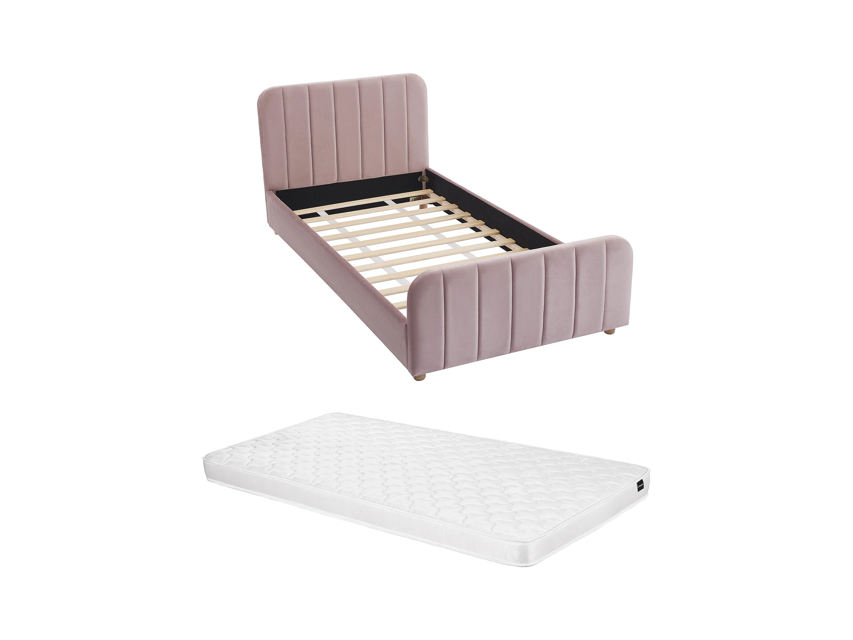 Säng 90 x 190 cm - Sammet med vertikala sömmar - Rosa + Madrass - ROGADI