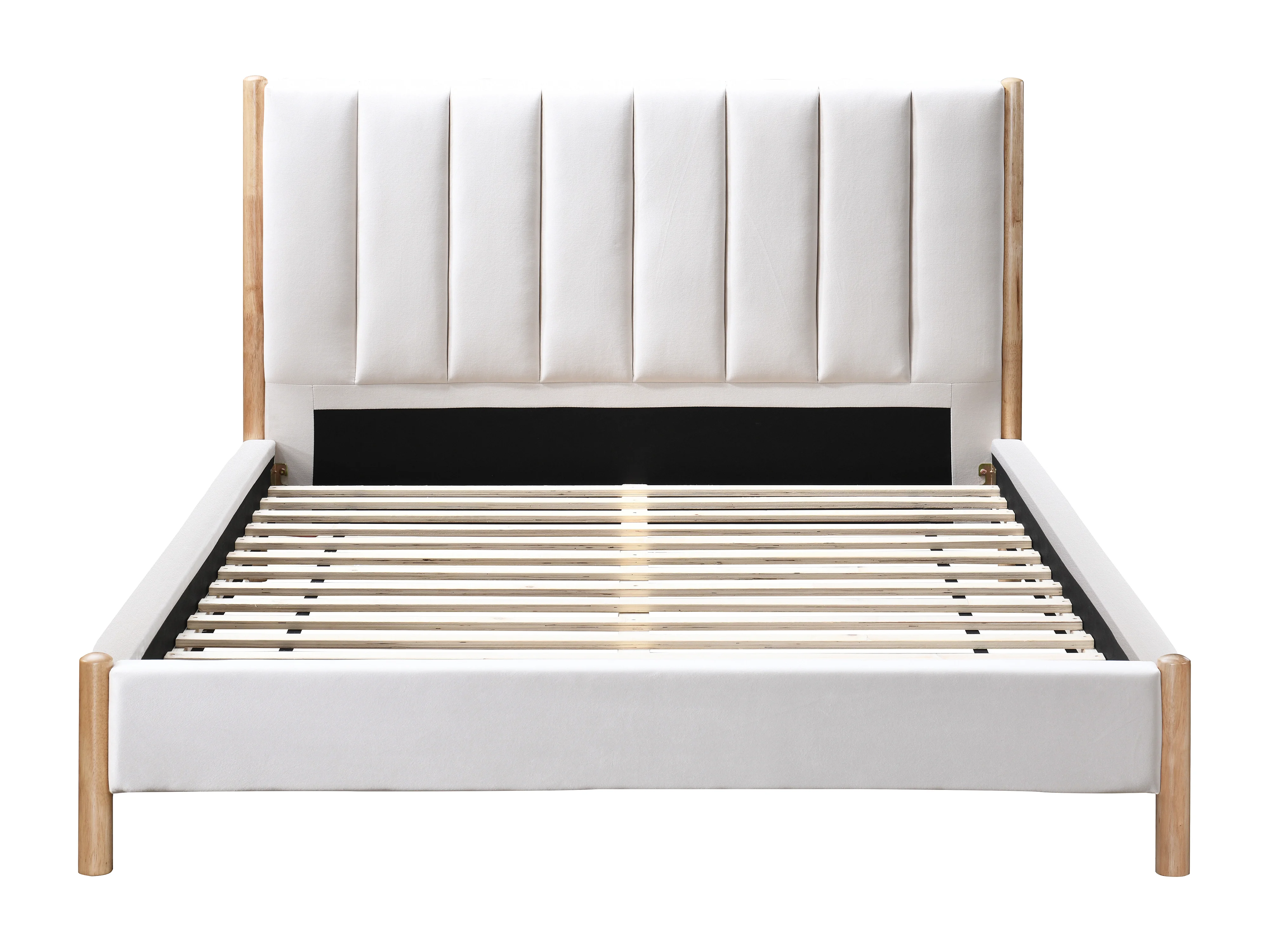 Säng 140 x 190 cm med sänggavel med vertikala sömmar - Sammet - Elfenbensvit - SIZAMA