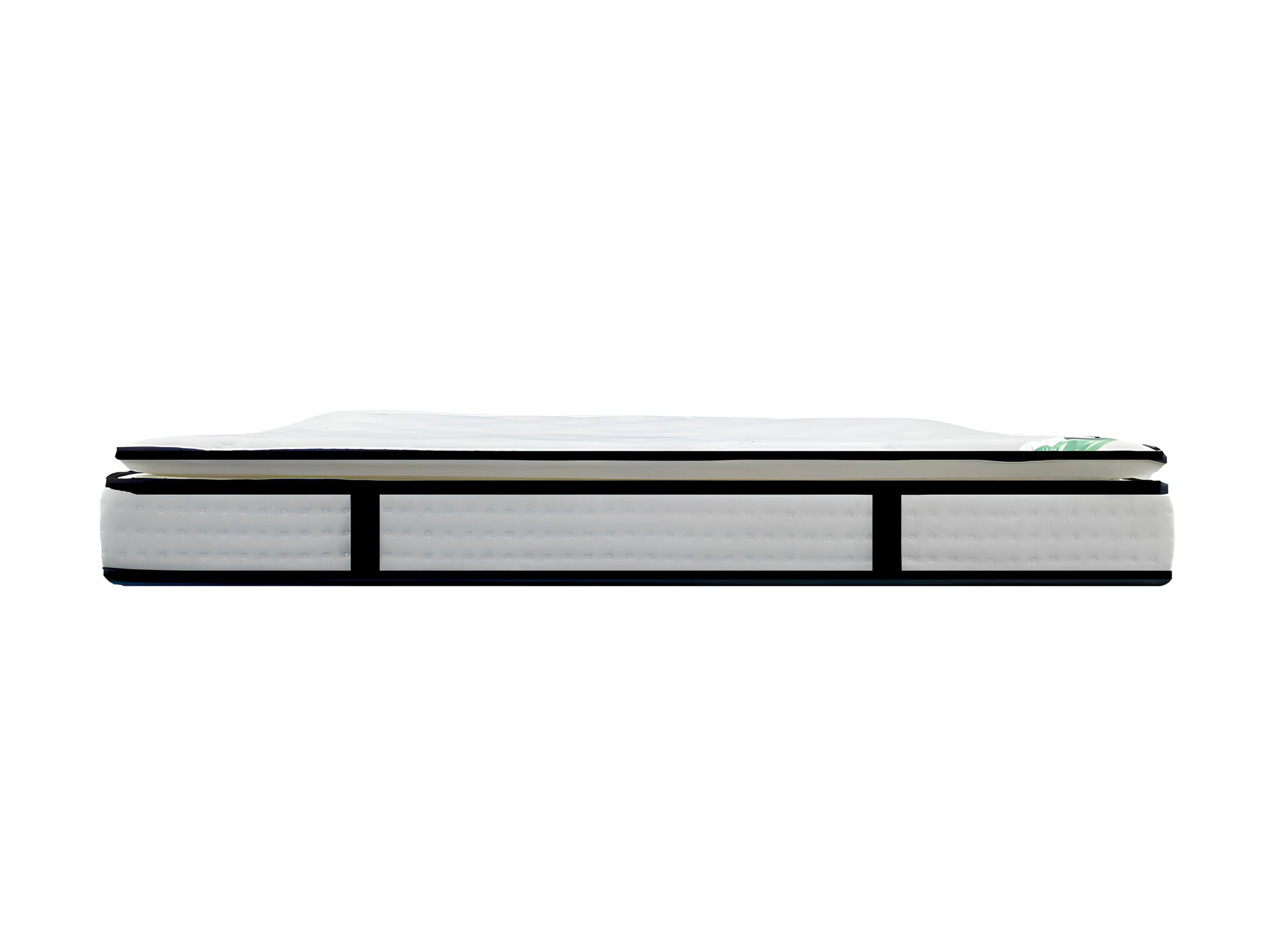 Madrass och sängbotten med pocketfjädrar och koniska tryckfjädrar