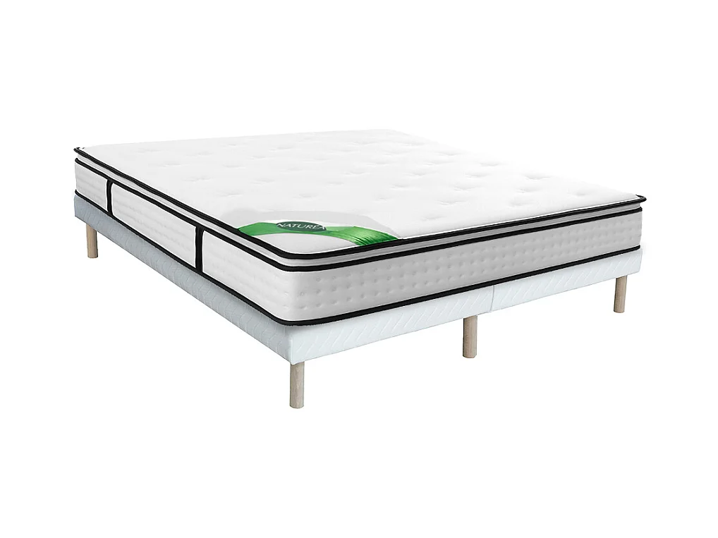Set 180 x 200 cm bäddmadrass + resårmadrass med 7 zoner integrerad bäddmadrass och bambufoder tjocklek 23 cm - TAREVO från NATUREA