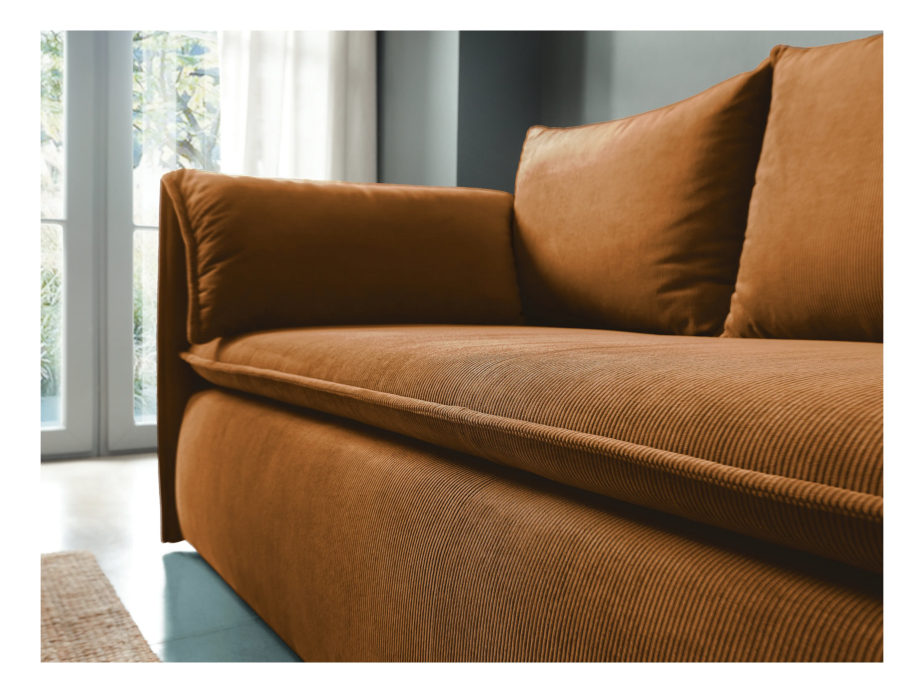 Samtalsfärgad 3-sits bäddsoffa i manchesterssammetsfodrad terraottasammets TEODORA