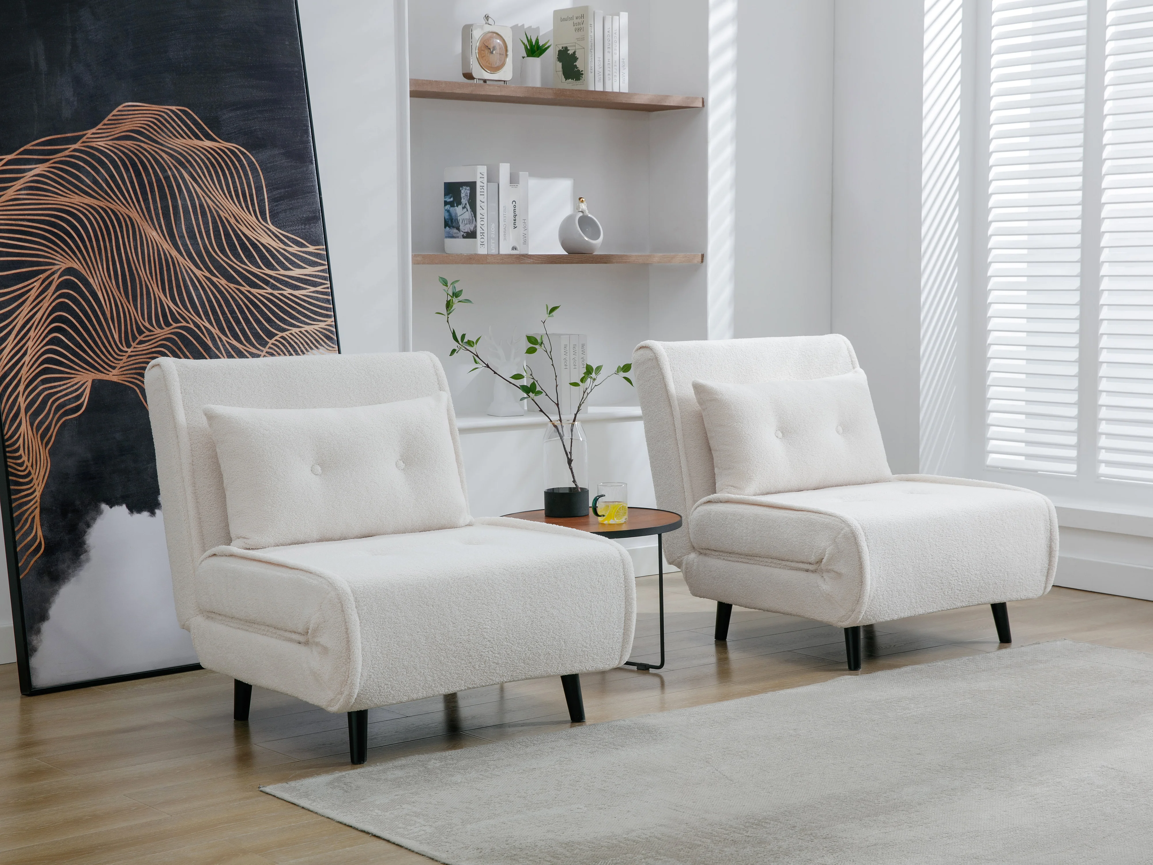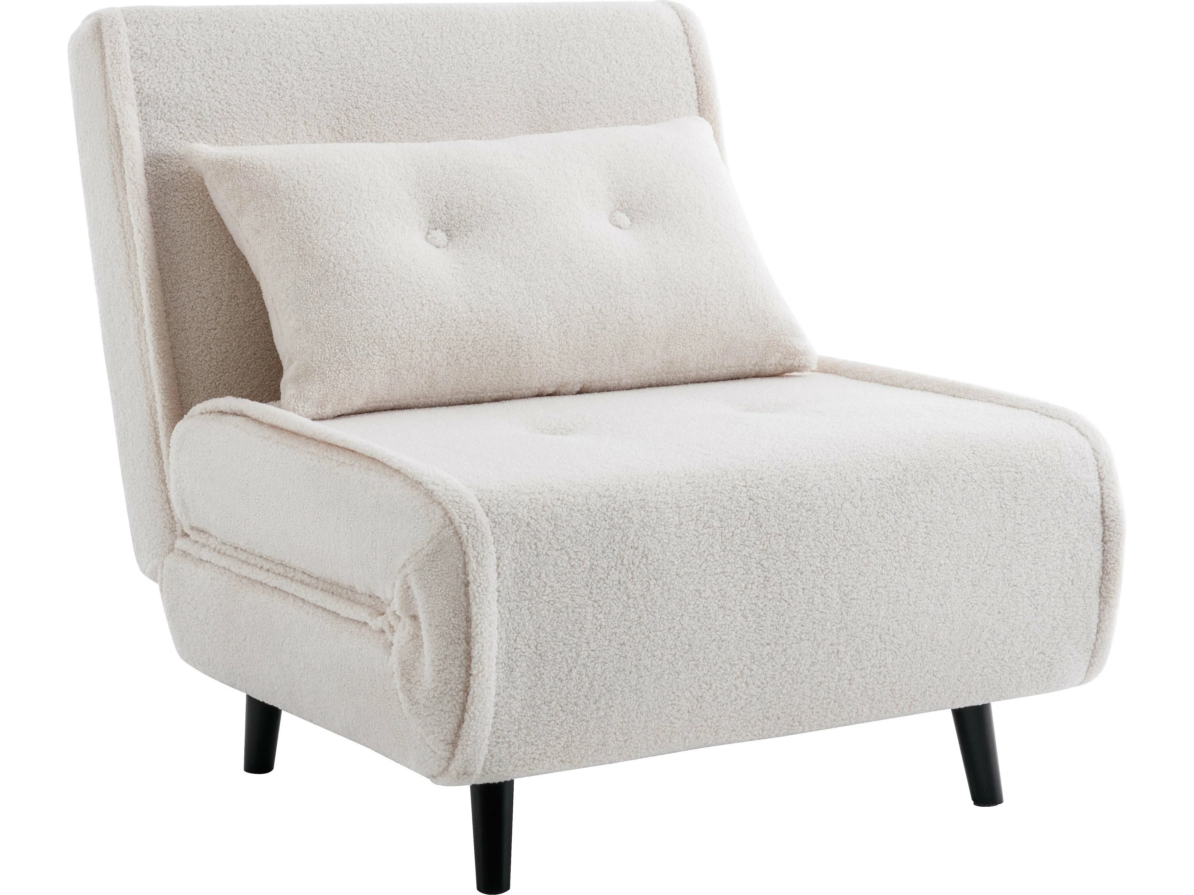 Vadderat läderklädda fötölj i elfenben bouclette URIBE