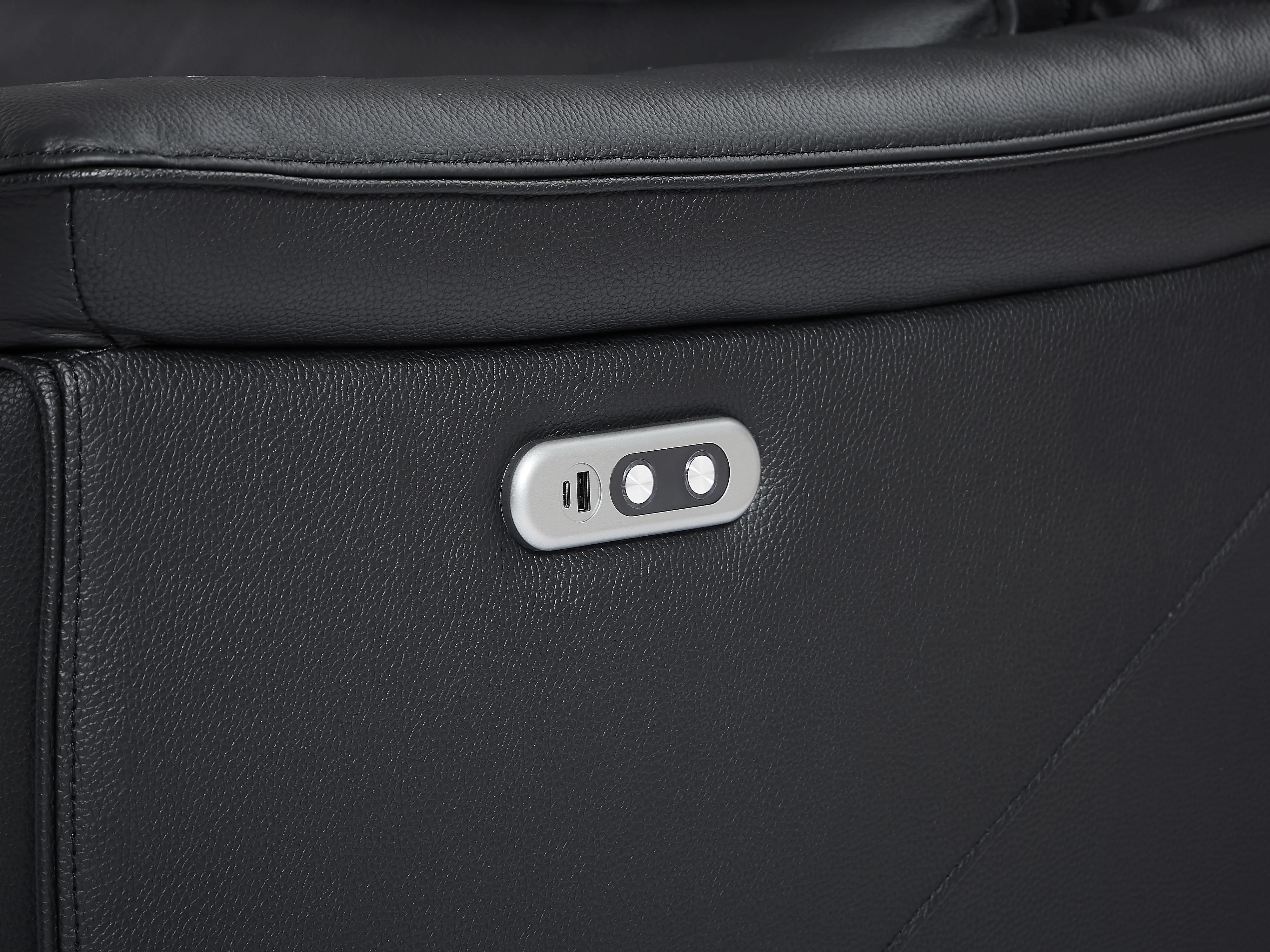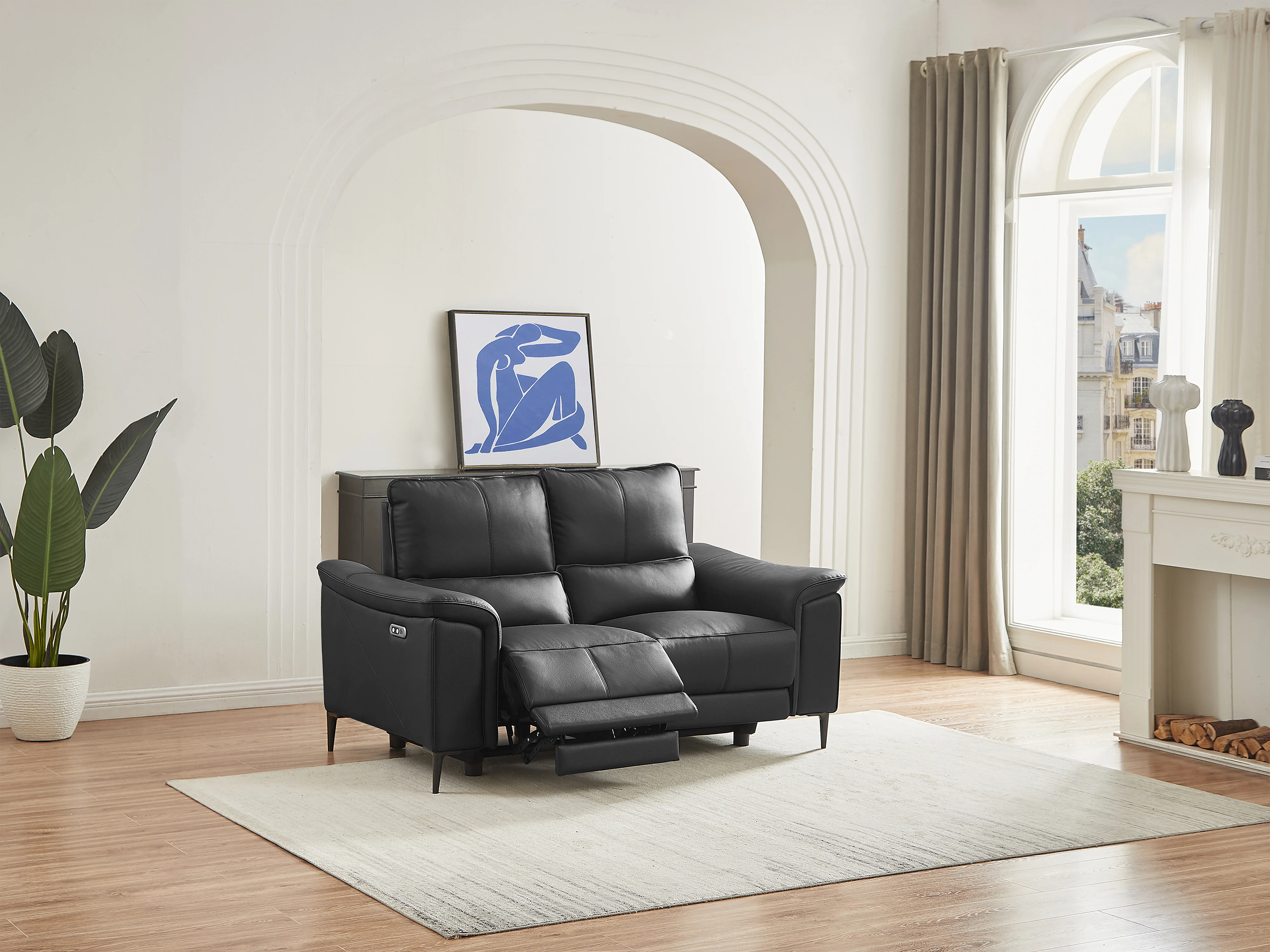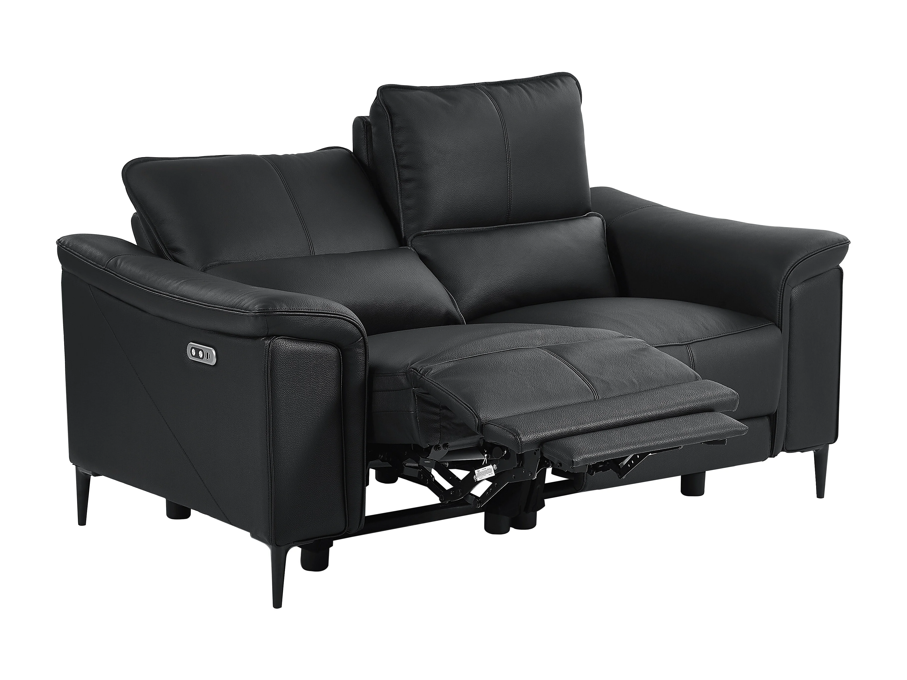 Svart 2-sits soffa VALPARO med elektrisk relaxfunktion i koläder